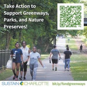Sustain Charlotte is circulating a petition asking the Mecklenburg County Board of Commissioners to fully fund greenways, parks, nature preserves and recreation centers because they are important community resources for all. The organization’s goal is to obtain 1,500 signatures.