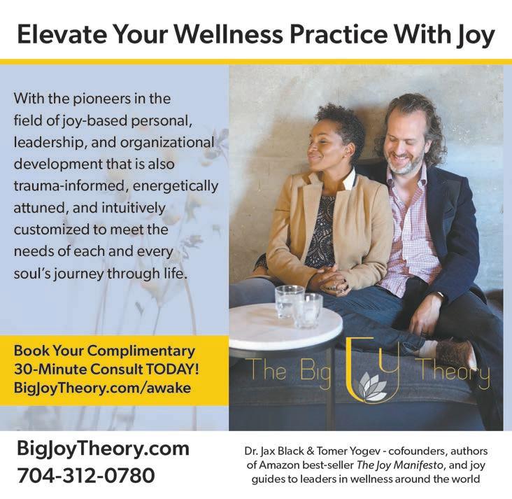 In today’s rapidly evolving wellness landscape, keys to being a successful provider are not only in strategies, but in soul alignment and intuitive wisdom. Big Joy eory, co-founded by certi ed reiki masters and long-time energy workers Dr. Jax Black and Tomer Yogev, is o ering wellness entrepreneurs complimentary 30-minute consultations that feature practical insights to help them identify their “next right breath” from a foundation of intuition and strategic awareness toward building thriving, heartcentered practices grounded in joy, purpose and energetic clarity.