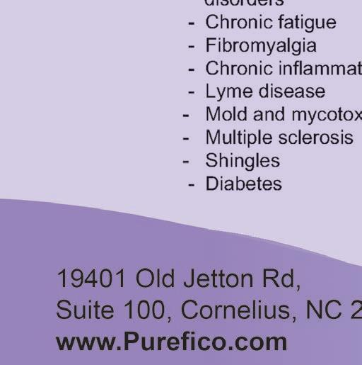Naturopathic practice founded by Dr Michelle Dillon specializing in natural, non-invasive treatments of the root cause of conditions including incontinence. One of few Charlotte providers of Emsella Chair. Book your free first session today. See ad, page 7.