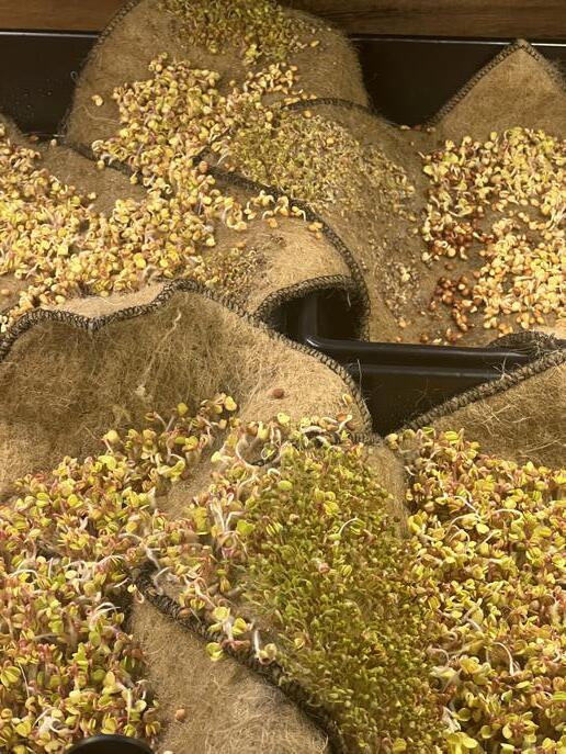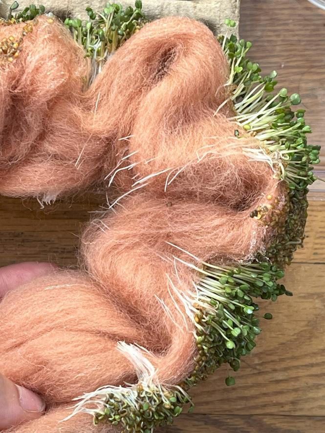 Wheatgrass textiles with beeswax template Wool as textile and substrate structure for seed growth