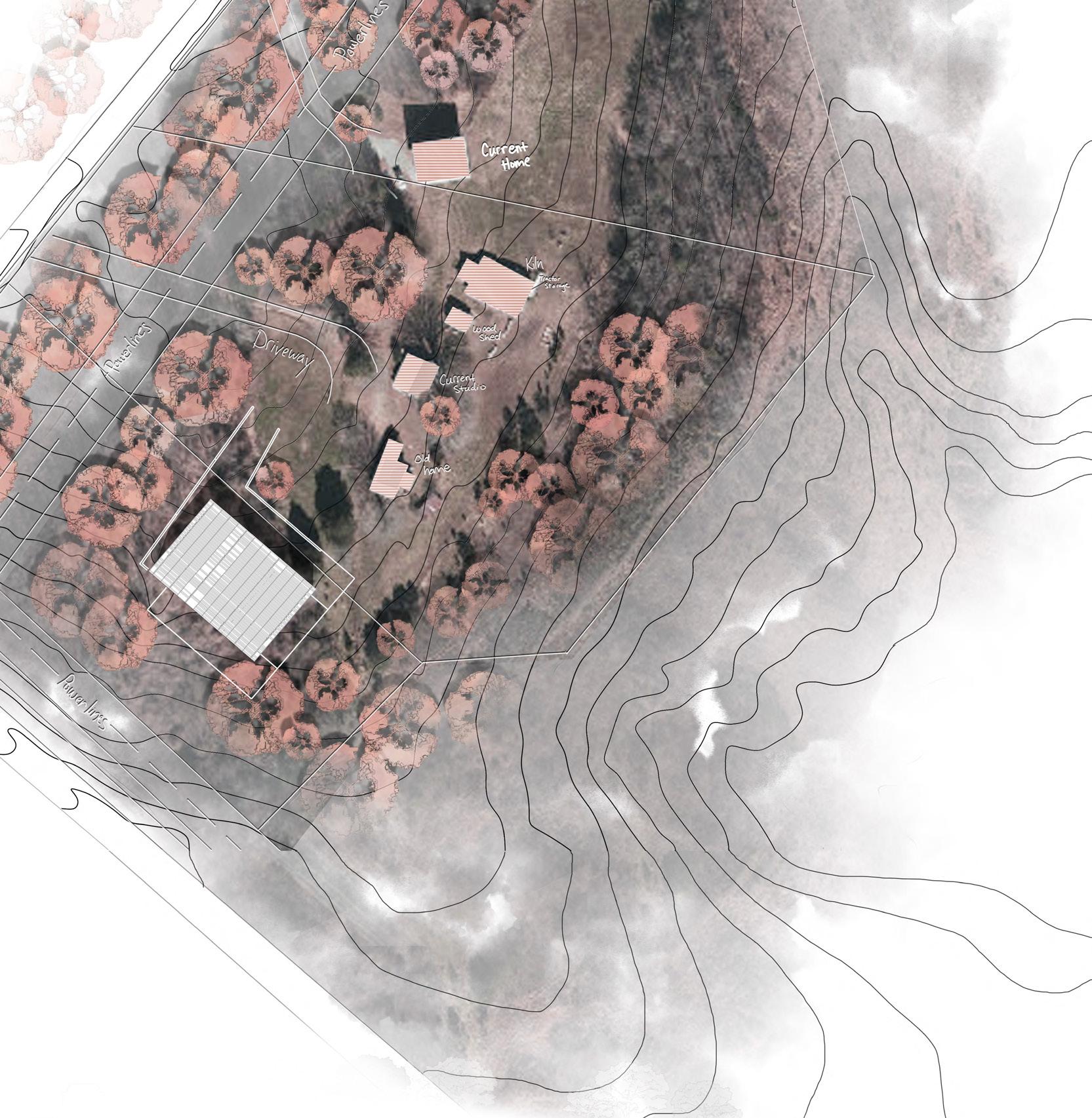 Beginning with research into renewable energy systems, we discovered the potential of algae biofuels, an insight that became the foundation of the project. Situated near a stream with frequent algae production and a site prone to high runoff, we leveraged these conditions to implement algae harvesting and water retention systems. The design also incorporated stakeholder feedback, prioritizing the preservation of existing oak trees by adhering to critical root zone (CRZ) guidelines, shifting the building’s footprint away from the park and closer to Lake Wheeler Road. With each level of the building integrating green roofs and outdoor spaces, the project facilitates various interactions with nature while ensuring the building’s narrative remains tied to its plant-powered energy systems.