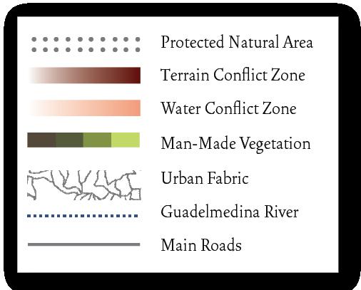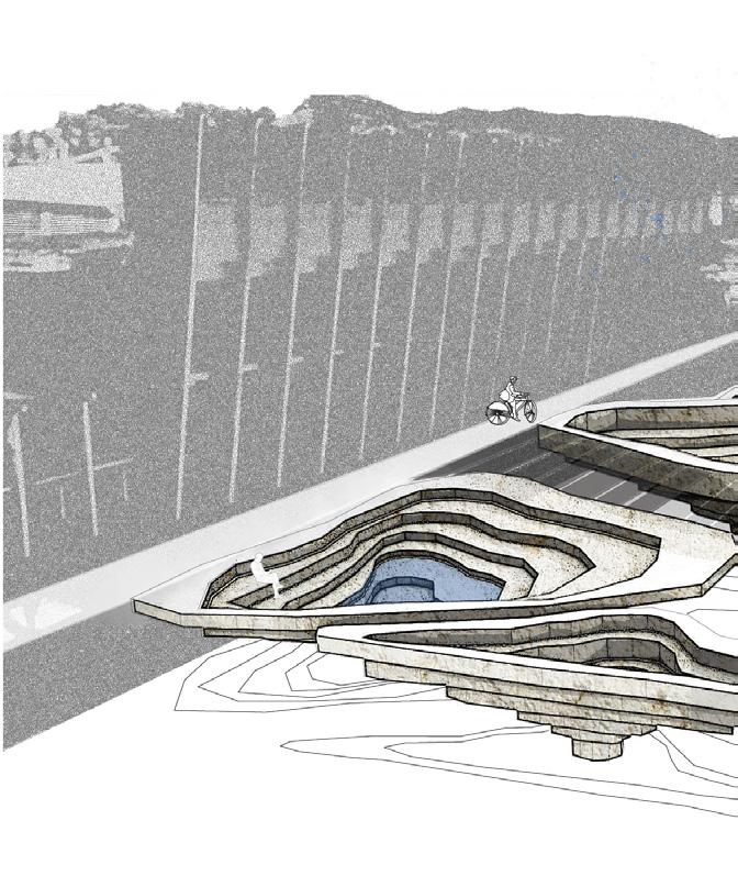 This project explores the historical and ongoing impact of urbanization on natural ecosystems, highlighting the disconnect between human development and nature. It focuses on Malaga’s Guadalmedina River, once a vital natural feature now constrained by concrete walls, as a symbol of this separation. This proposal aims to restore water and nature, bringing indigenous farming techniques to the cityscape. By addressing Malaga’s current drought conditions, this design promotes the coexistence of natural systems and urban development through a three part proposal.