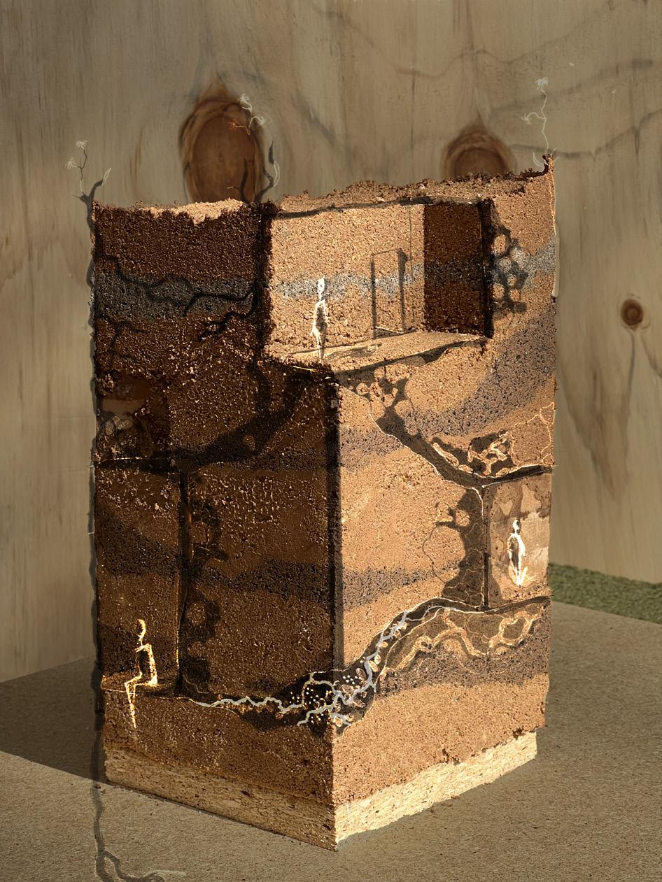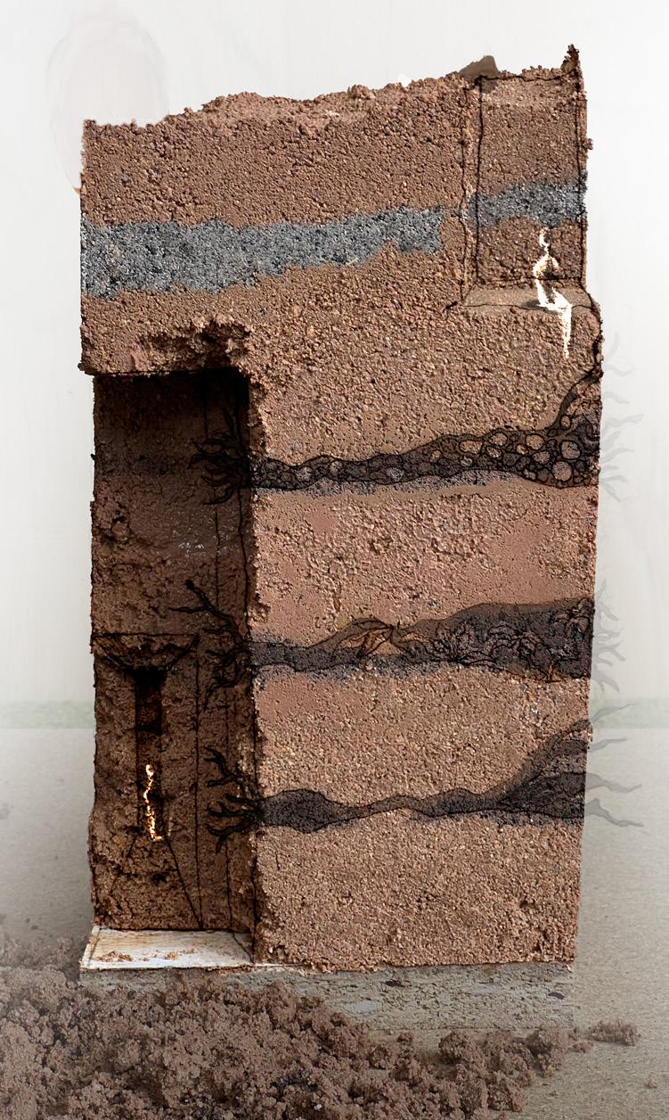 Building with earth began 5,400 years ago, it is evident that soil teems with life and although archeologists overlook the microbial lives that were present in these walls, the livelihoods of humans, plants, animals, and microbes were defined by mutualism. By using earthen construction methods as a medium for growth, I explore how this material could harness moisture to support life and utilize root networks to engineer structure.