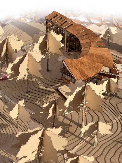 The Canopy Conservatory is a living, breathing Plant Research Center that connects people with nature through a design inspired by the life cycle of an oak tree. From its rooted entrance to its elevated termini, the building embodies growth, offering spaces for recreation, education, and functional engagement with native plant life. By harnessing the power of plants, such as algae biofuels, to generate energy, the conservatory demonstrates the potential of symbiosis between architecture and the environment.