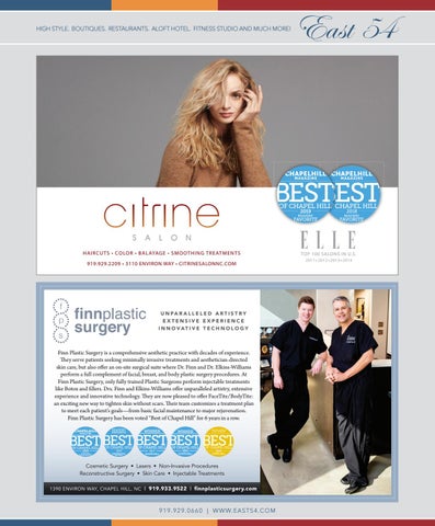 Cosmetic Surgery • Lasers • Non-Invasive Procedures Reconstructive Surgery • Skin Care • Injectable Treatments 1390 ENVIRON WAY, CHAPEL HILL, NC | 919.933.9522 | finnplasticsurgery.com