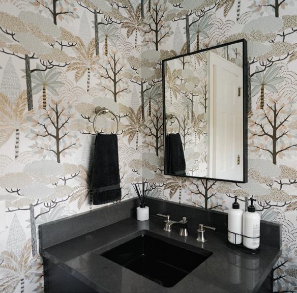 ABOVE Themes of nature cover the walls of a half bathroom.