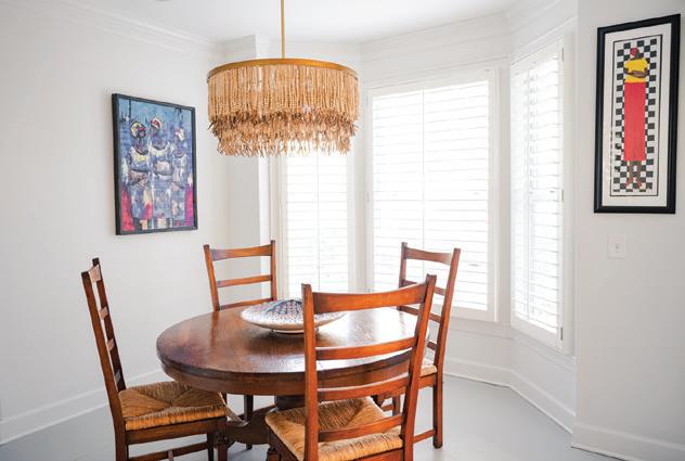 One unexpected feature in the kitchen is the floor. The original yellow pine wood is painted light gray and continues into the adjacent breakfast nook. “That’s something unusual to do,” Carol Ann says, explaining that in Europe, particularly in Scandinavia, white-painted floors are more common and can brighten the space by reflecting light.