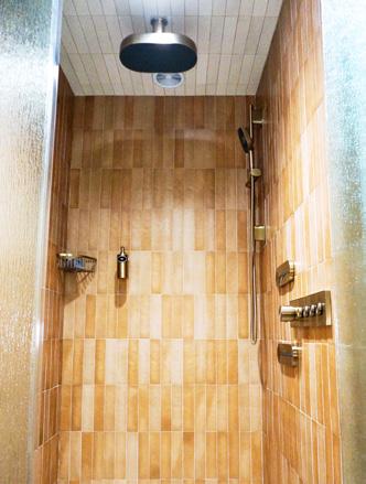ABOVE Designer Carol Ann Zinn used Julie’s tub to inspire choices in tiles and color in the primary bathroom.