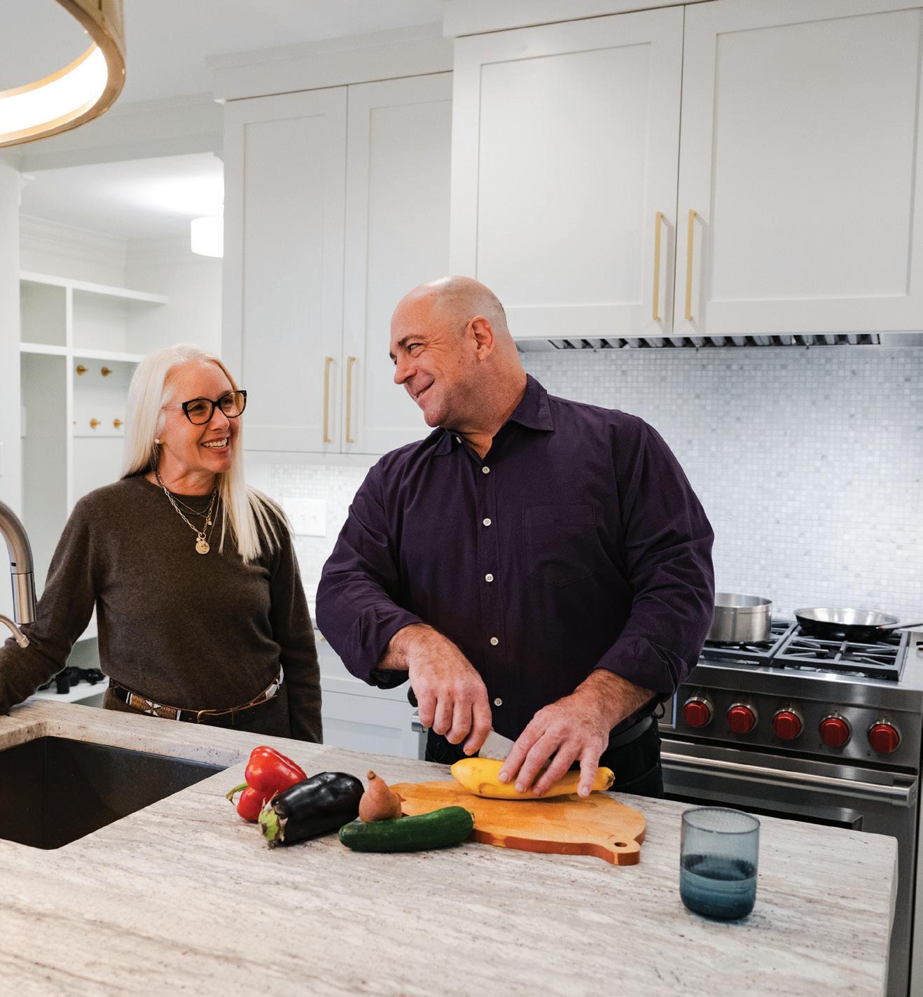 Bret, who closed his fine dining restaurant – Elaine’s on Franklin – during the pandemic, still cooks and caters for multitudes. “It’s hard to cook for one person,” he admits. Inside the wide drawers on either side of the cooking range, he stores his global collection of spices. Julie points out a packet from Zanzibar, a bottle from Turkey and another from Istanbul.