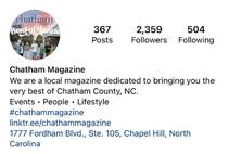 Chapel Hill Magazine & Chatham Magazine 1777 Fordham Blvd., Ste. 105 919-933-1551 chapelhillmagazine.com chathammagazinenc.com