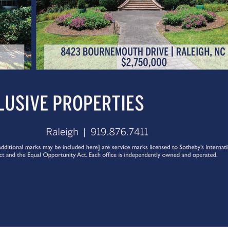 For advertising inquiries, email advertising@chapelhillmagazine.com Melissa Crane melissa.crane@trianglemediapartners.com Kem Johnson kem.johnson@trianglemediapartners.com Lauren Phillips lauren.phillips@trianglemediapartners.com Lucinda Poole lucinda.poole@trianglemediapartners.com Dana Statkun dana.statkun@trianglemediapartners.com