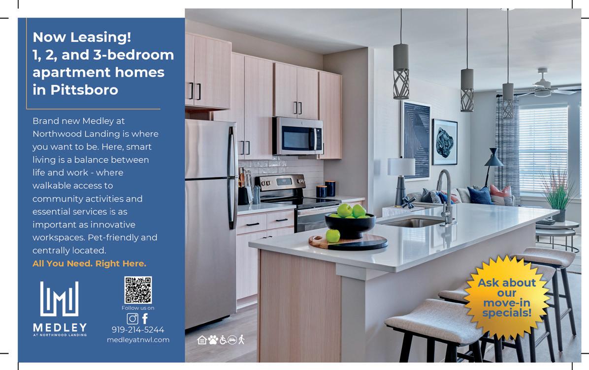The Pittsboro Board of Commissioners approved conditional rezoning for the 209acre Robeson’s Walk mixed-use development in September. The project, located at East Street and Industrial Park Drive, will include a minimum of 1,000 housing unit to include a mix of apartments and townhomes. The housing portion will cover 112 acres, while 19.5 acres are reserved for commercial use. Nearly 73 acres will be donated to the Town of Pittsboro. Of the residential units, 120 will be set aside for affordable housing – 60 for households earning 80 percent of the area median income and 60 for those at 100 percent. Residents will enjoy proximity to the Chatham Beverage District