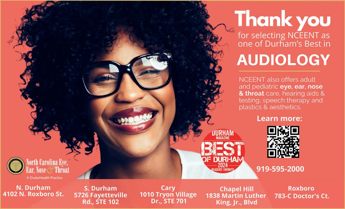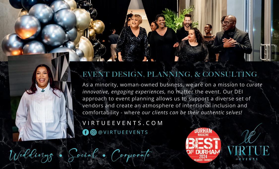 I’m looking forward to extended coffee dates at Cocoa Cinnamon before hitting up the Scrap Thrift with my collector-in-crime, Leah Josephson, followed by margaritas at Azteca Grill or trying Cheeni Durham’s new late-night bar, Beej (flip to page 44 for more on that!). I’ll go to Wednesday night trivia with Pickle at The Glass Jug Beer Lab in south Durham for some casual competitive fun and a couple pints, then grab a four-pack of whatever Pi series is on the shelves that day. Perhaps I’ll work up the courage to try yoga again and take a class led by my pal Dana Kouchel at Threehouse Studios. I need to start putting plans to paper and invite friends to a pre- and post-Festival for the Eno gathering, making sure to pack my Lo & Behold bug spray before heading to the two-day event. I’ll drop in to a few American Dance Festival performances and 21c Museum Hotel’s new exhibit, “Refuge: Needing, Seeking, Creating Shelter,” which opens June 13, and possibly get tickets for another Durham Bulls’ Bark in the Park with a couple of my fave dog owners, Meredith Kramer and Sarah Calvert. I’m long overdue for a trim, so I foresee a trip to Bella Trio Salon & Spa in my future for a little self-care. Flip to page 104 for the full list of Best of Durham honorees, or learn a bit more about this year’s winners beginning on page 38. Wherever your summer adventures lead – beachside, lakeside or poolside – bring this edition along and discover all the exciting ways to experience the best of Durham!