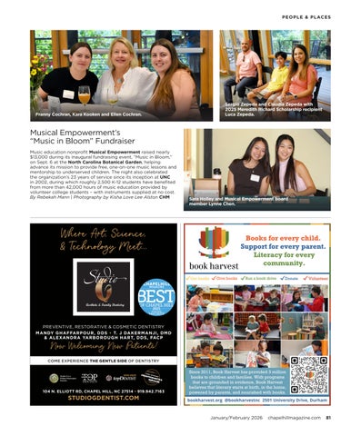 Musical Empowerment’s “Music in Bloom” Fundraiser Music education nonprofit Musical Empowerment raised nearly $13,000 during its inaugural fundraising event, “Music in Bloom,” on Sept. 6 at the North Carolina Botanical Garden, helping advance its mission to provide free, one-on-one music lessons and mentorship to underserved children. The night also celebrated the organization’s 23 years of service since its inception at UNC in 2002, during which roughly 2,500 K-12 students have benefited from more than 42,000 hours of music education provided by volunteer college students – with instruments supplied at no cost. By Rebekah Mann | Photography by Kisha Love Lee Alston CHM