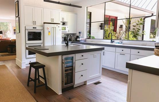 Their 3,700-square-foot single-story modern farmhouse sits on wooded acreage off Old Greensboro Road, next door to their daughter, Casey DiRienzo, and their son-in-law, Marc DiRienzo of DiRienzo Builders, who constructed their home. “It’s just a delight to have our 11-year-old granddaughter next door,” Robin says.