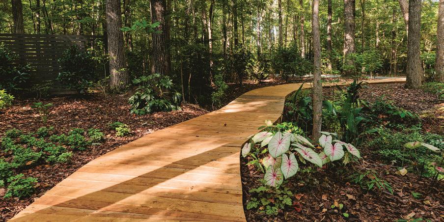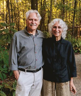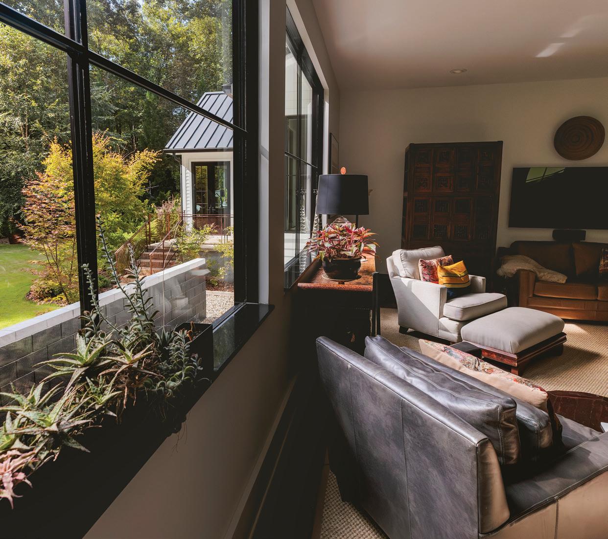 all of the garden paths, and with Chad Van Deusen, owner of Get Rooted Nursery, on landscaping and sourcing Japanese maples and other trees. “We started working with Chad when we lived in the town [limits] in Chapel Hill,” Robin says. “We’ve known him for more than 20 years.” The couple also likes doing some of the landscaping and garden design themselves. “Robin has taken a number of landscape design courses, and the design part is something she enjoys,” John says.
