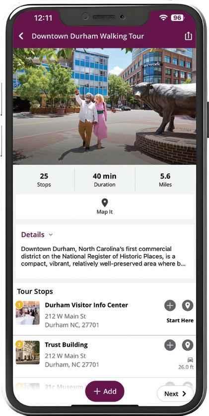 “Start by browsing the locally owned shops around the Brightleaf District – it’s the perfect spot to find unique, inspired goods. When it’s time to eat, you can’t go wrong with tried-and-true favorites like Seraphine, Dashi and Mateo Bar de Tapas. For entertainment, catch a movie or a live concert at the Carolina Theatre, or head to the Durham Performing Arts Center for Broadway shows, comedy acts and world-class performances.”