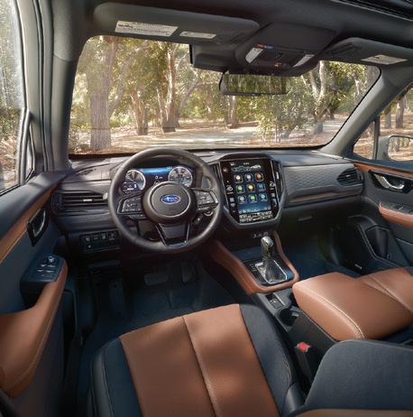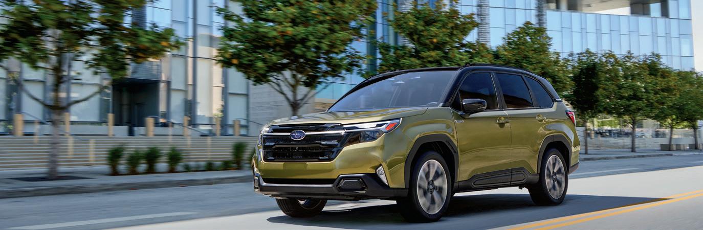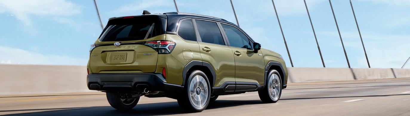The 2025 Forester Hybrid is equipped with the legendary capability of standard Symmetrical All-Wheel Drive. Optimizing traction for rain, snow, rough roads, and even off-road driving, Symmetrical All-Wheel Drive constantly evaluates acceleration, braking, and cornering in real time to continuously deliver power to all four wheels.