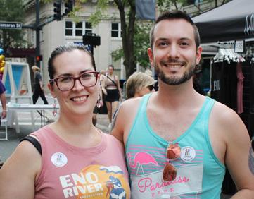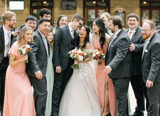 Crossed Paths Meredith and Kevin’s story began in July 2019 while working as engineers for John Deere in Iowa. Their first meeting came while line dancing at a bar in Rock Island, Illinois. Kevin only danced to one song – which didn’t exactly impress Meredith – but it was enough to spark a conversation. Their friendship quickly grew into something more, filled with shared volunteering and climbing trips. Meredith, who grew up in Chapel Hill, wanted to return home to the Triangle and moved to downtown Durham in 2021 – with Kevin following shortly after. Their love blossomed as they settled in, finding joy in Durham Bulls games, Mettlesome improv classes, visits to the Durham Farmers Market, participating in the Durham Community Concert Band, taking stained glass classes at Fusion Gallery and trying every restaurant within walking distance of their apartment at Liberty Warehouse