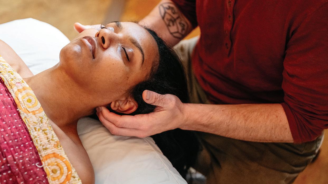 ABOVE RIGHT Betsy receives acupuncture treatment to ease her long COVID symptoms.