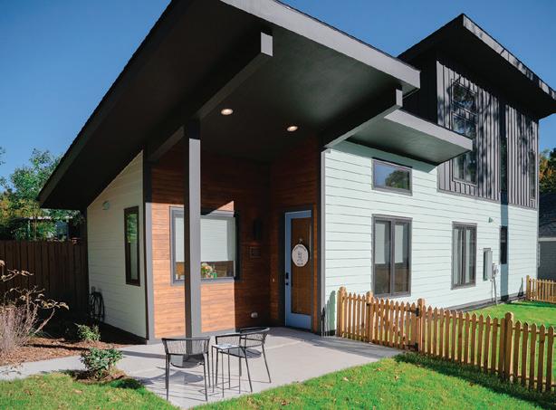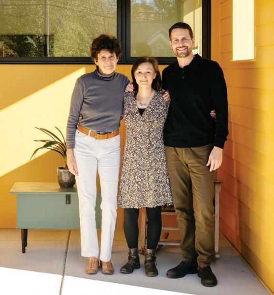 LEFT Meridian Health Solutions owners Dagmar Ehling and Fang Cai join architect Mike Cincala on the office's colorful front porch.