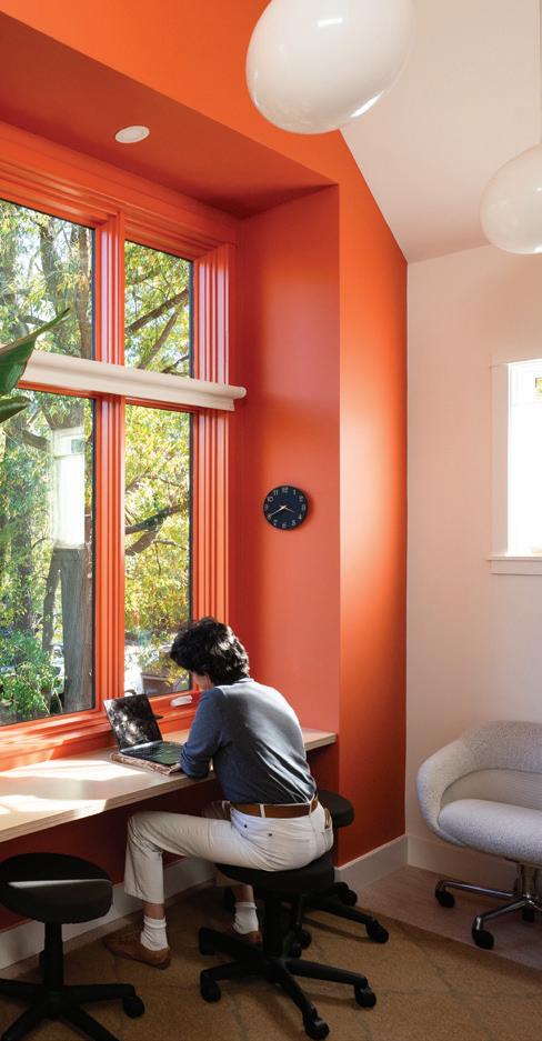 Thoughtful touches, like a laundry chute and water filler, streamline daily routines for staff members like Annie Bloom. “People often add flyers to the community board, and I draw a new herb on the chalkboard each month,” she says. “The waiting area has become a community hub, and our treatment rooms are quiet, but never dark.”