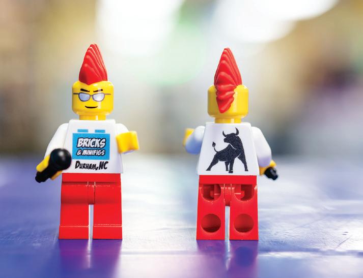 That’s the mindset I’m attempting to manifest this season. Forgoing the many and multifaceted to-do lists, the chores that seem never-ending, the constant tug on time and attention. Putting down the phone, the laptop, the TV remote (well, unless the Tar Heels are playing or a beloved holiday movie is on) to simply just be. That doesn’t mean you or I should shut ourselves off from the world. My winter wish is this: let’s be intentional but also leave room for a little spontaneity. Take a morning off to grab coffee with a friend you haven’t seen in too long. Pause on your way home to talk with a neighbor – ask about their holiday plans, see if they need a hand with any yardwork, or simply thank them for the chat and suggest doing it again soon. Wander into a local shop with no agenda; if you spot something that speaks to you, for yourself or someone else, go ahead and buy it. (Our gift guide on Page 30 might spark a few ideas.) Tend to yourself – schedule that doctor’s appointment, book that longoverdue haircut or carve out time for something restorative – and to your friends, family and community, too. Heck, to really take a break from all the responsibilities, use your imagination to build your own Lego fantasy world and minifigure like mine (above) – find out where to go to create your own on Page 32.