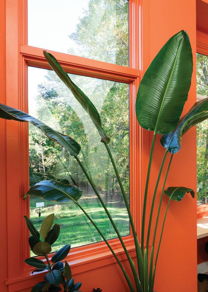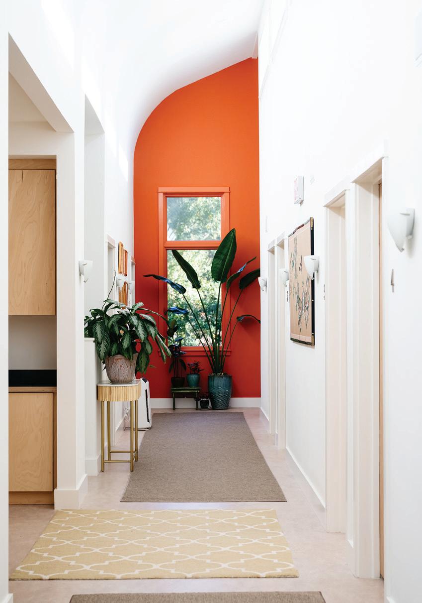 ABOVE Lush plants, natural light and a pop of orange greet patients as they enter the treatment area.