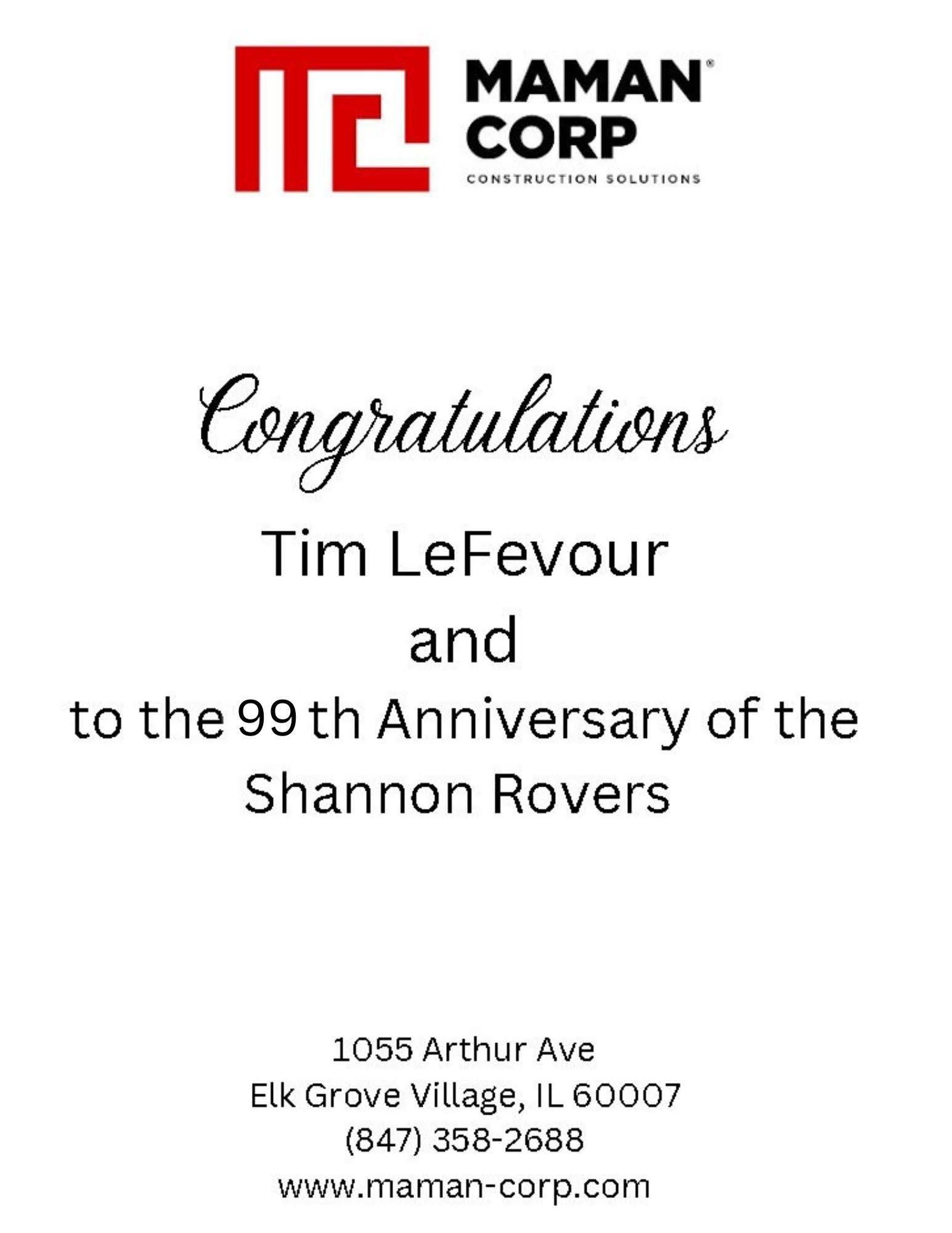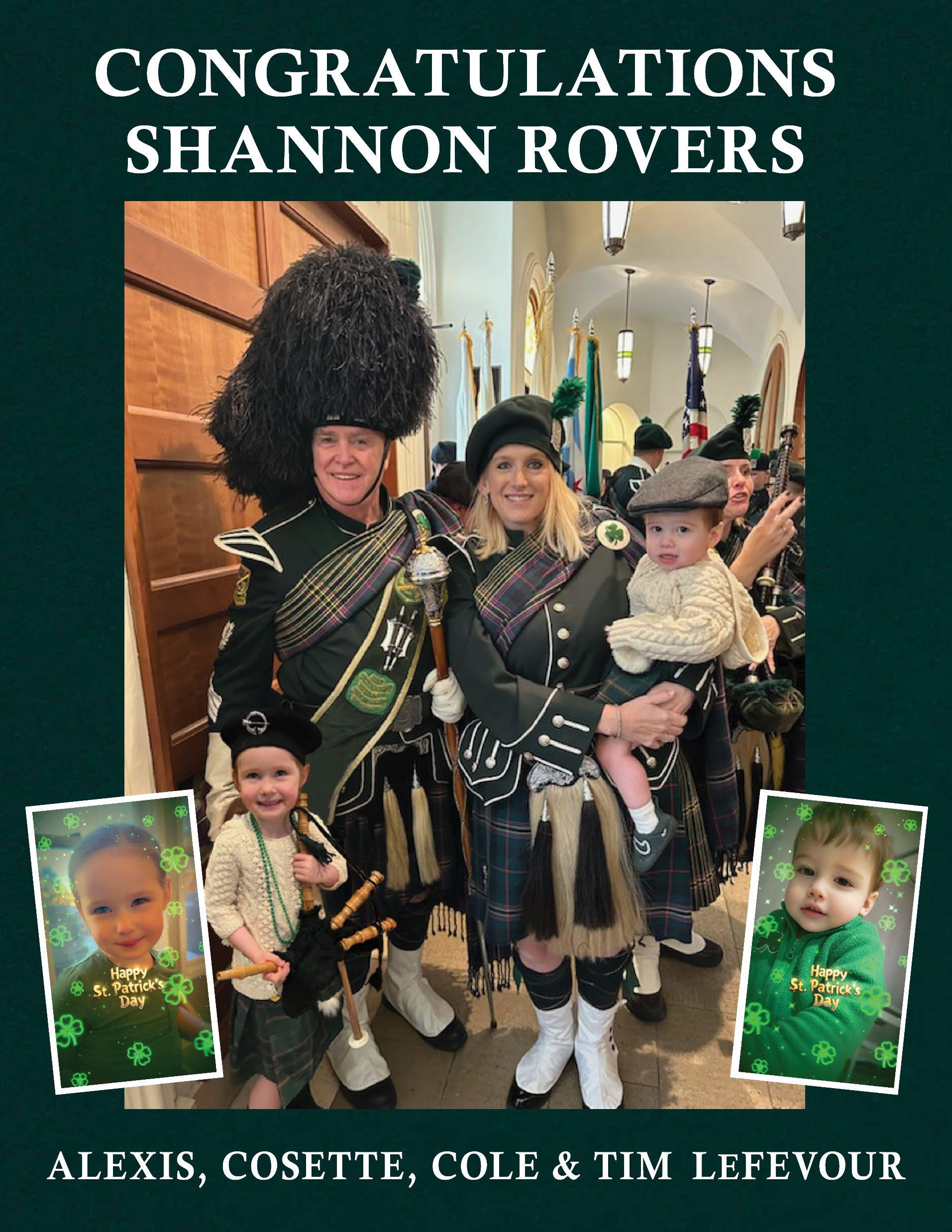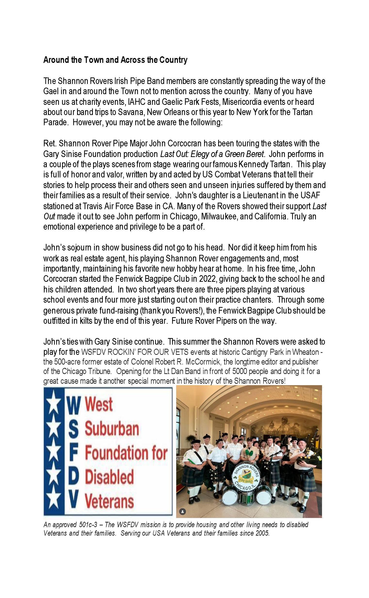 . However, there is no exception to this tradition of recognizing those that stand out. This year’s honoree exemplifies the Way of the Gael. John Corcoran has been a dedicated musician and leader throughout his years with the Rovers - whether as an Officer, or Group Leader or Band Mate. Always with a making sure the Rovers are performing at our best. John leads by example - if something needs to be done….he's there to help out. John saw a need to keep a pipeline of young musicans entering the Band and started up the Fenwick Bagpipe Club. He saw an opportunity to support our veterans and joined a traveling projection of Last Out as tthe productions Bagpiper - performing across the country. Inspiring us to do more.... Congratulations to John Corcoran and thank you for your service and inspiration.