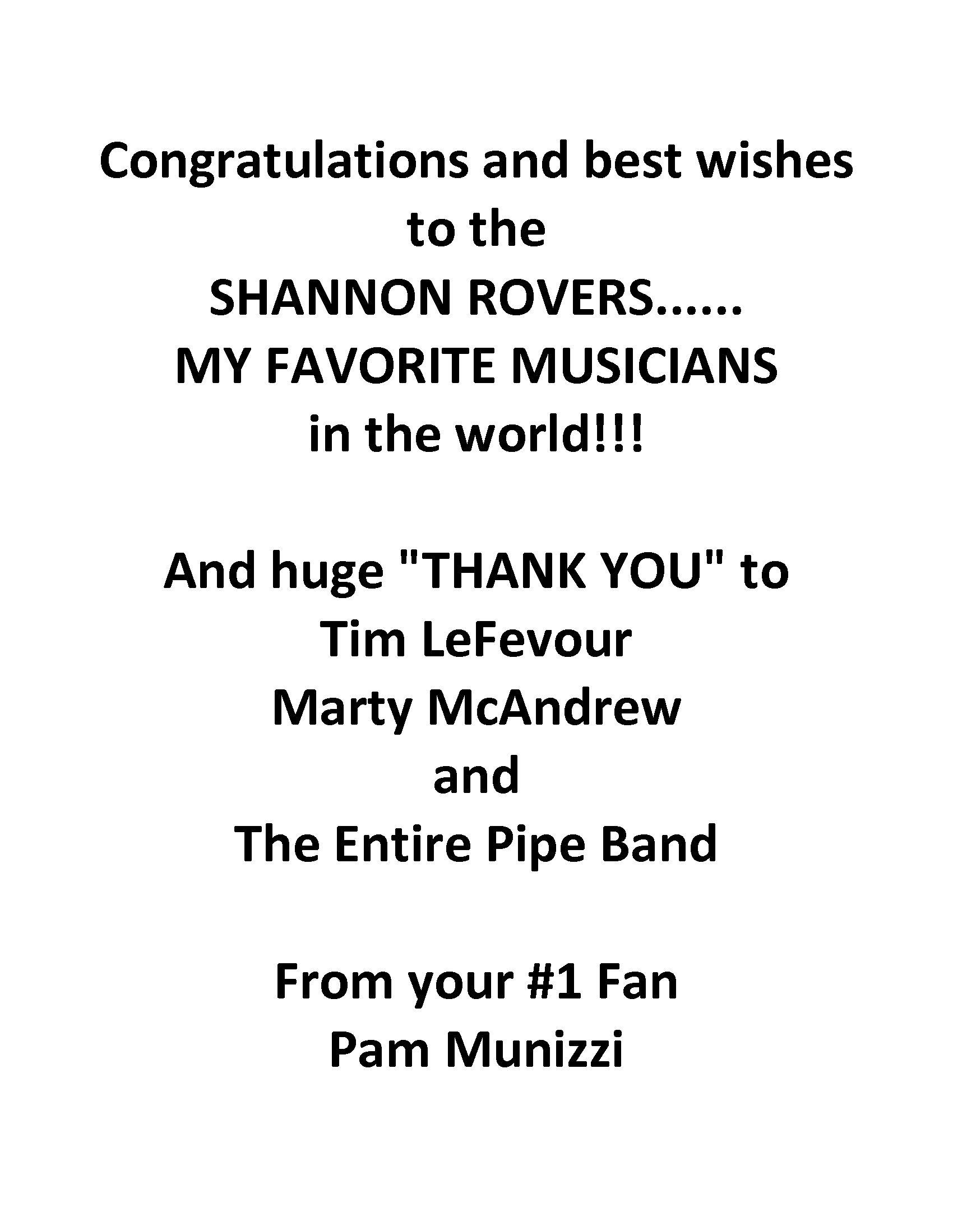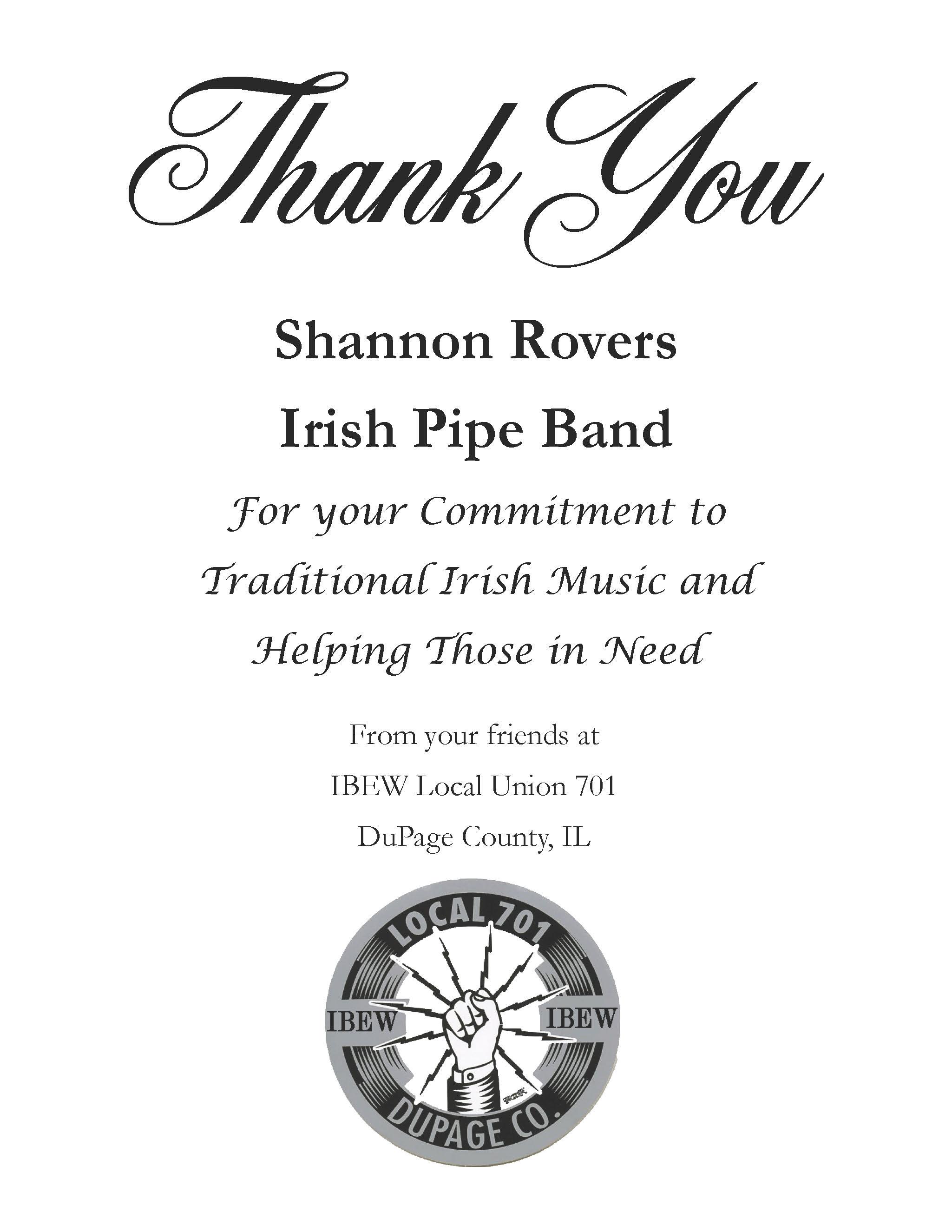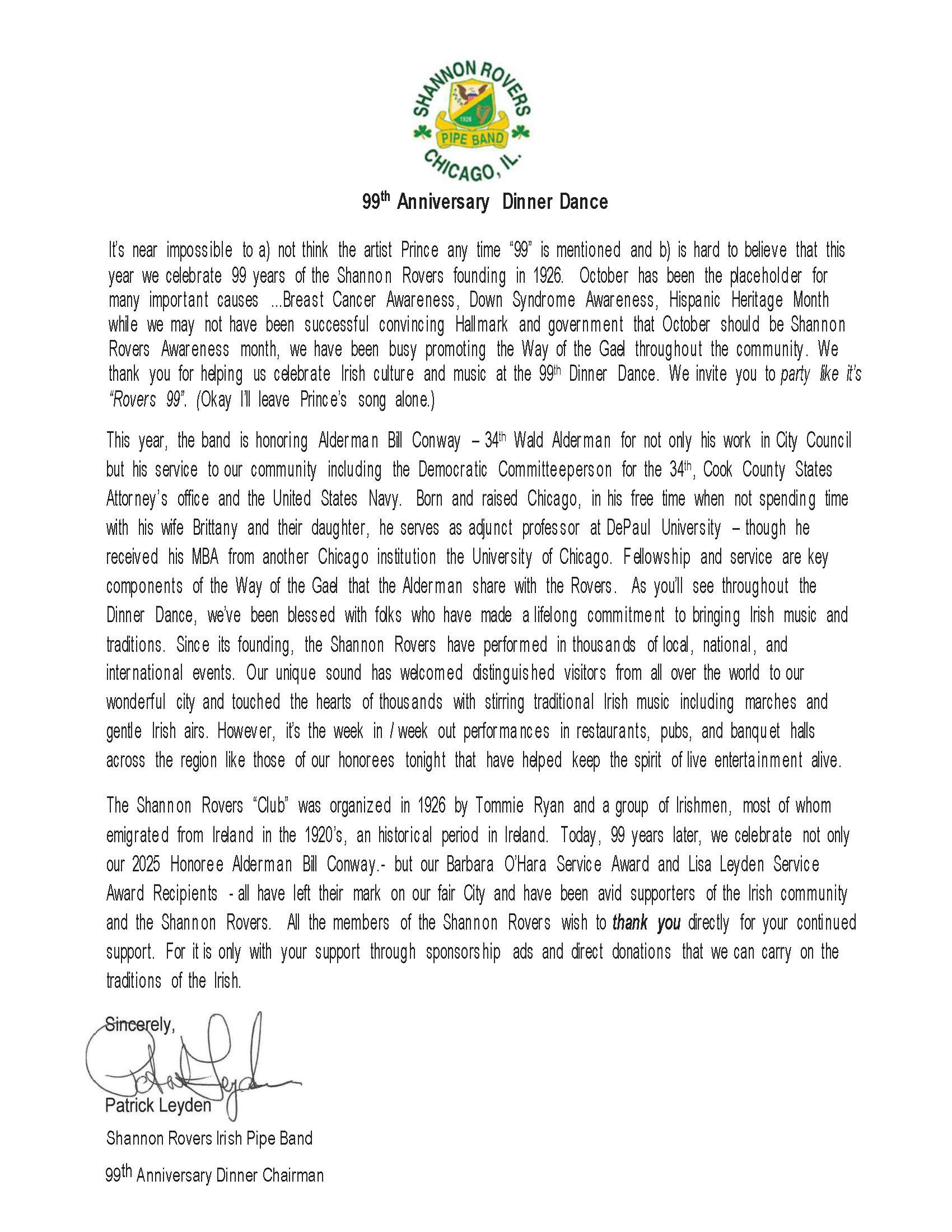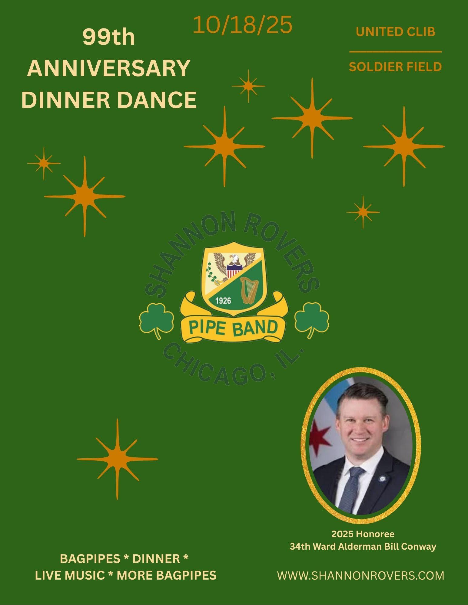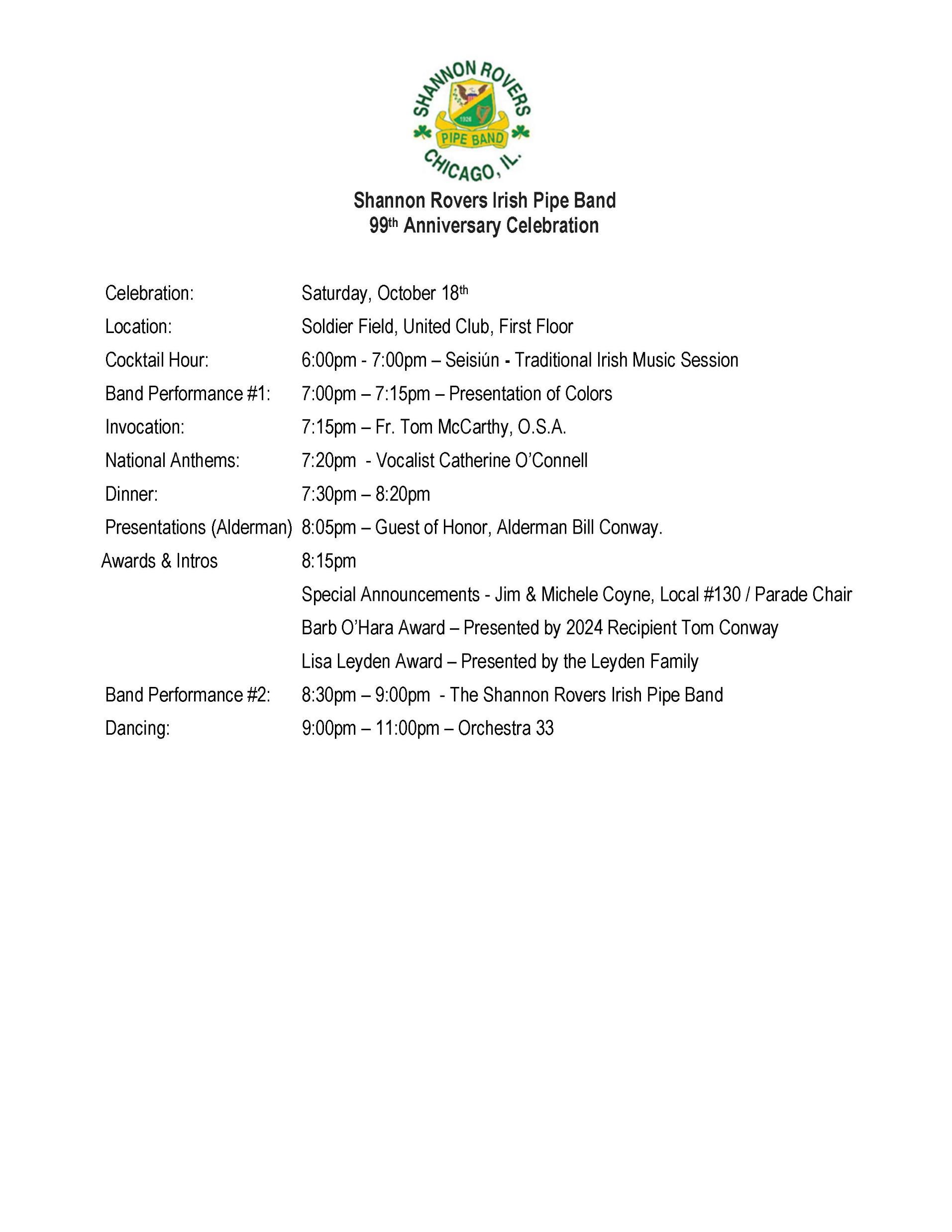 Each year we recognize one of our own for their contributions to the band and the Irish community. A traditional that goes back to 1994 when the Officers of the Band, with full backing of the members, recognized Barbara O’Hara for her years of service and dedication to Irish Community and Shannon Rovers. For Barbara that started with her 1st Chicago’s St. Patrick’s Day parade, as an officer for over 25 years, and continued until her passing. In all those years she never missed an opportunity to provide a kind word of support, to recognize other members for their achievements, to provide a subtle nudge in the right direction with things were going off track, or simply to give Michael Flatley some advice on his dance. It was only natural that the Inspiration Award would be named in her honor moving forward from `on.