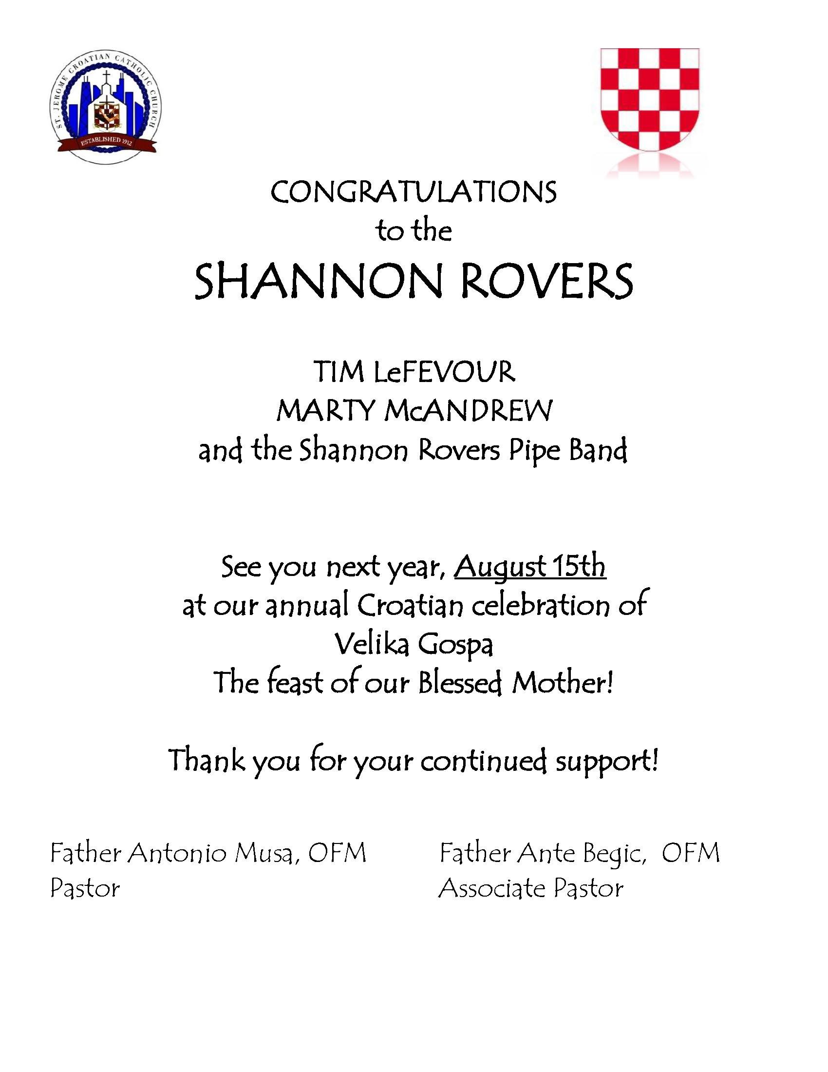 Last year, the Barbara O’Hara award went to Jim Murphy, who has been the heart and soul of the Rovers ever since joining the Shannon Rovers. He possesses that little some something extra - which can best be described as the Way of the Gael – spreading Irish culture through our music, laughter and storytelling. Jim’s great gift to us has been his unwaivering committment to the Rovers - always there when you need a helping hand which extends to other organizations he supports like Misericordia.