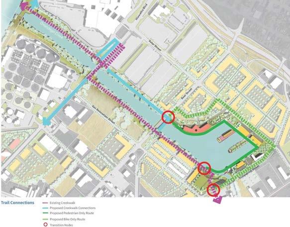 b. Connect to the existing historic creekwalk to bring in users to the harbor from the city and state greenways.