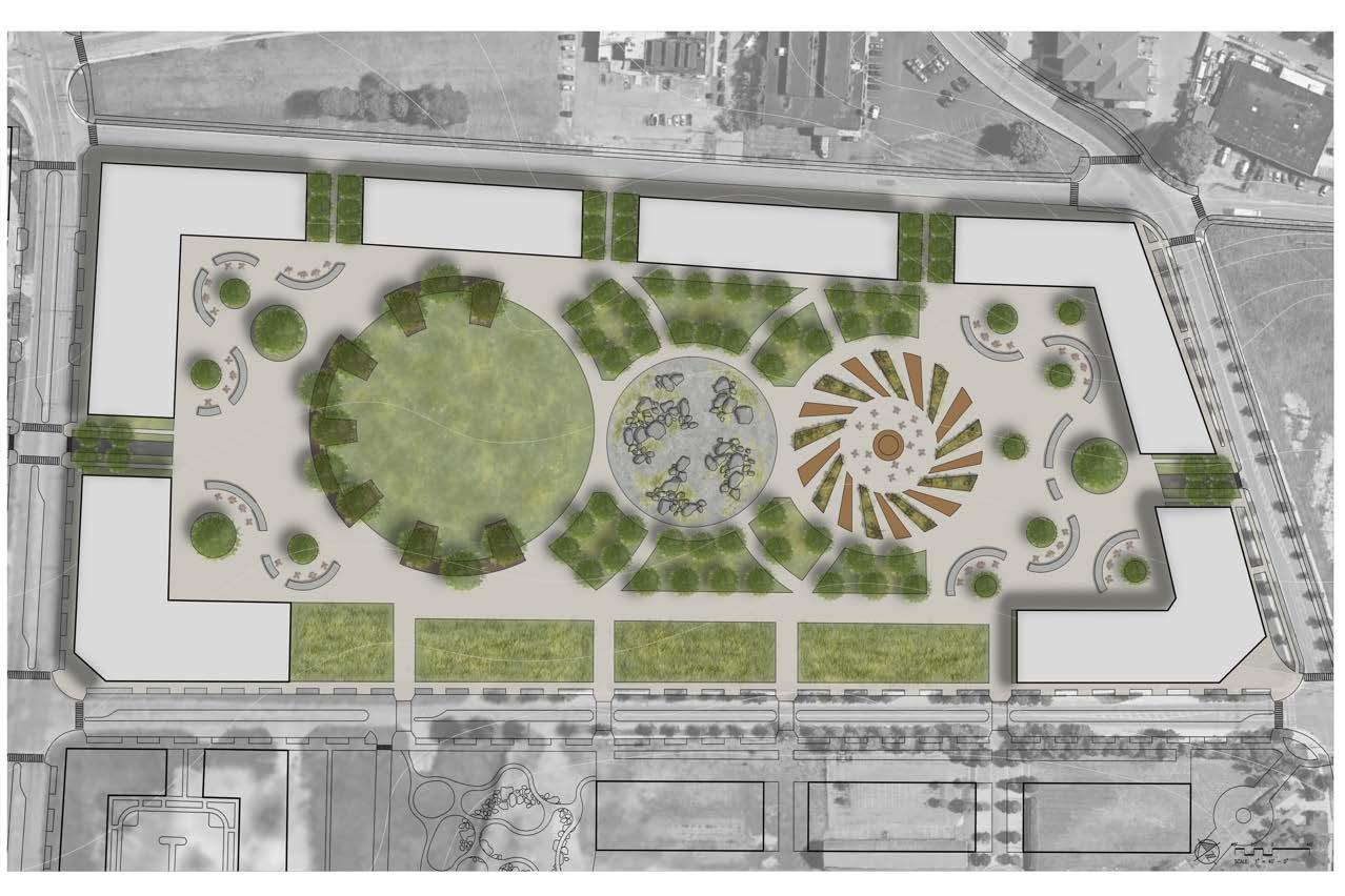 This park is designed to reflect the rich industrial history of Syracuse. As the foundation of the city and a place that has seen centuries of movement, development, and deconstruction, this space deserves to become an important part of Syracuse’s future. Soon to be surrounded by both residential and commerical activity, this park will serve the gerneral public and residents of the inner harbor community with the event lawn, natural playground, public plaza, and bordering courtyards. By moving the surface parking underground, this allows for more open space, which both the citizens and the city of Syracuse need.