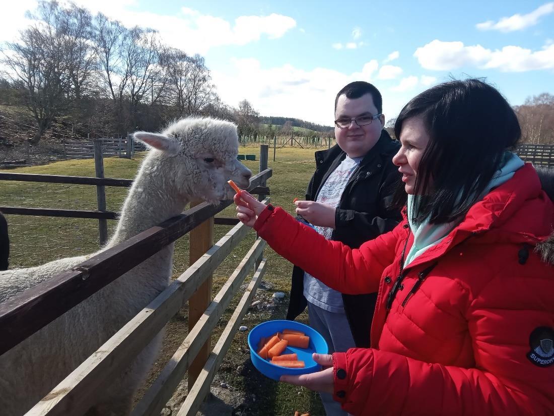 Diane, the Shared Lives officer at Moray Shared Lives had the opportunity to go on a longplanned Spring outing to a local farm, where they were booked in to pet the Spring lambs and have the chance to feed them their milk. This visit was one of Diane’s carer shadow visits to see, first hand, what the carers offer to the people who visit or live with them. Lauren had a