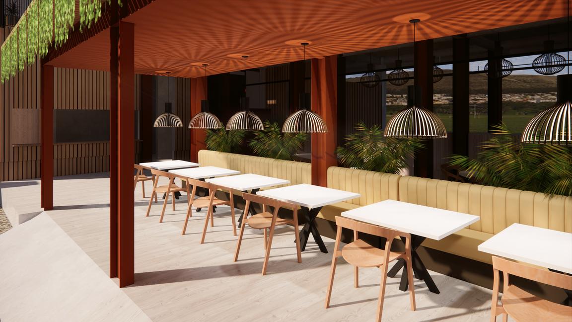 The concept used in this restaurant is Japandi Japandi interior design is the fusion of Japanese and Scandinavian interior design styles The name of "Japandi" is the combination of the words "Japanese" with "Scandi " Japandi concepts combine minimalism, simple, and nature
