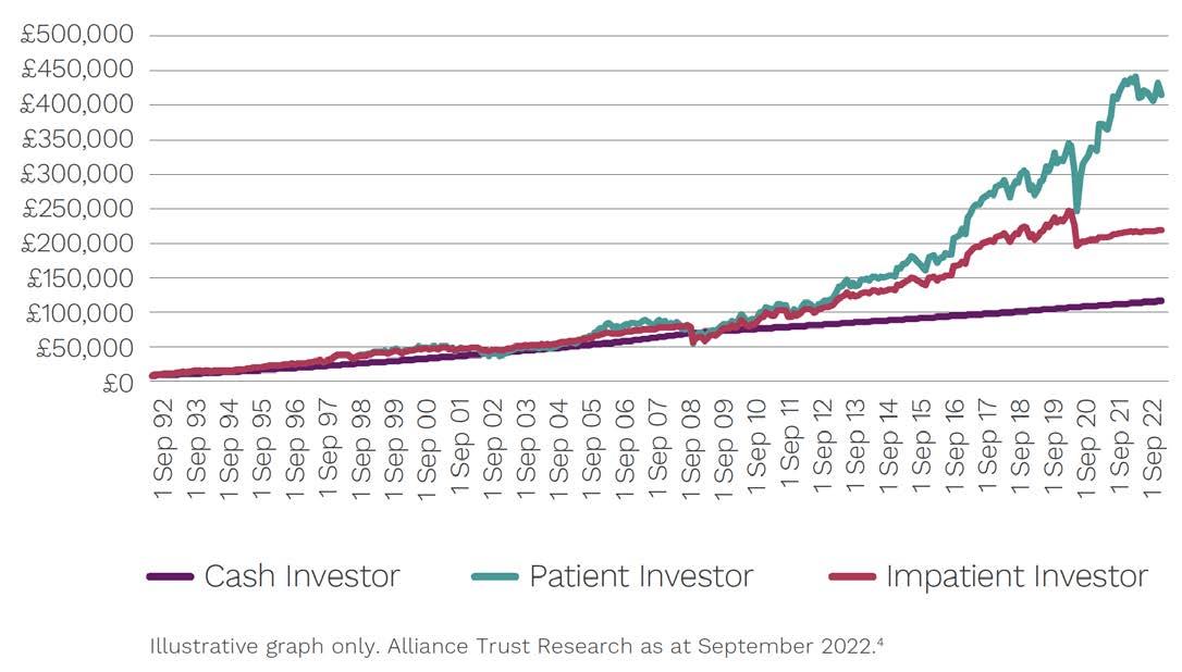 Alliance Trust has produced a chart to illustrate the cost of impatient investing over a 30-year timeframe.