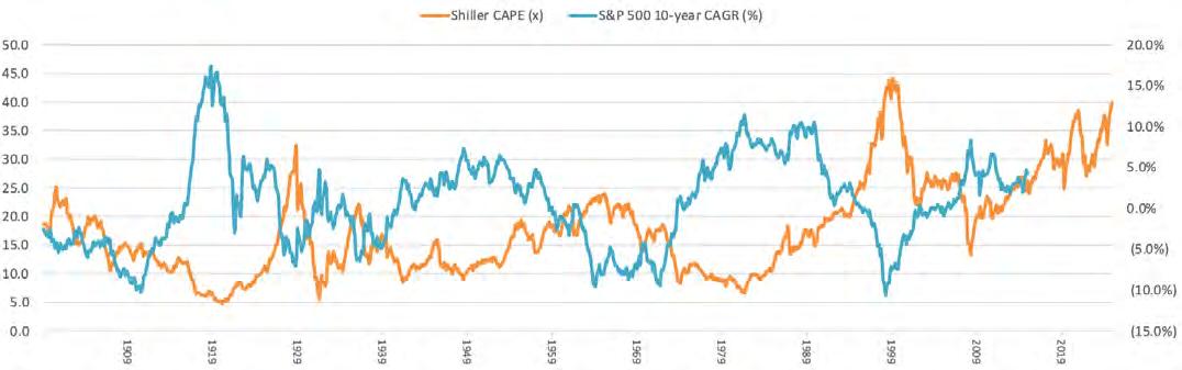 Simply put, the higher CAPE goes, the lower the compound annual growth rate (CAGR) over the next decade, and the lower CAPE goes, the better the 10-year returns. This is the iron law of maths and valuations, although it gives no clue as to the trajectory or degree of volatility over the decade. Taking Shiller’s work at face value, it seems unlikely that US stocks will do as well for investors in the next 10 years as they have the last 10, but only time will tell.