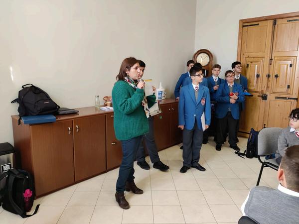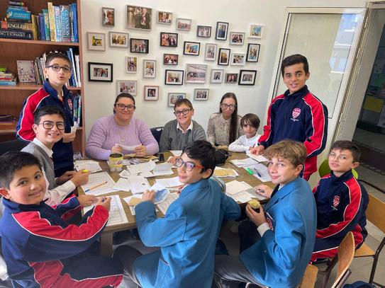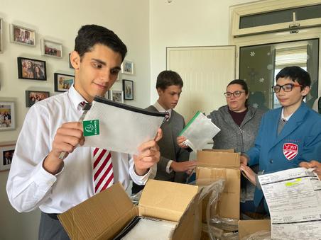 Selling oranges supporting the school chaplaincy in aid of a hospital in Betlehem