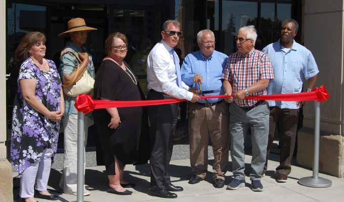 Cutting the ribbon to open the Central Plaza space on June 30 were, left to right, Head Start Director Shauna Matelski, Ed.D., LCCAA Board Member Elizabeth Meadows, LCCAA President and CEO Jackie Boehnlein, Lorain Mayor Jack Bradley, Lorain County Commissioner David Moore, developer Jon Veard and LCCAA Board President Gerald Pippens.