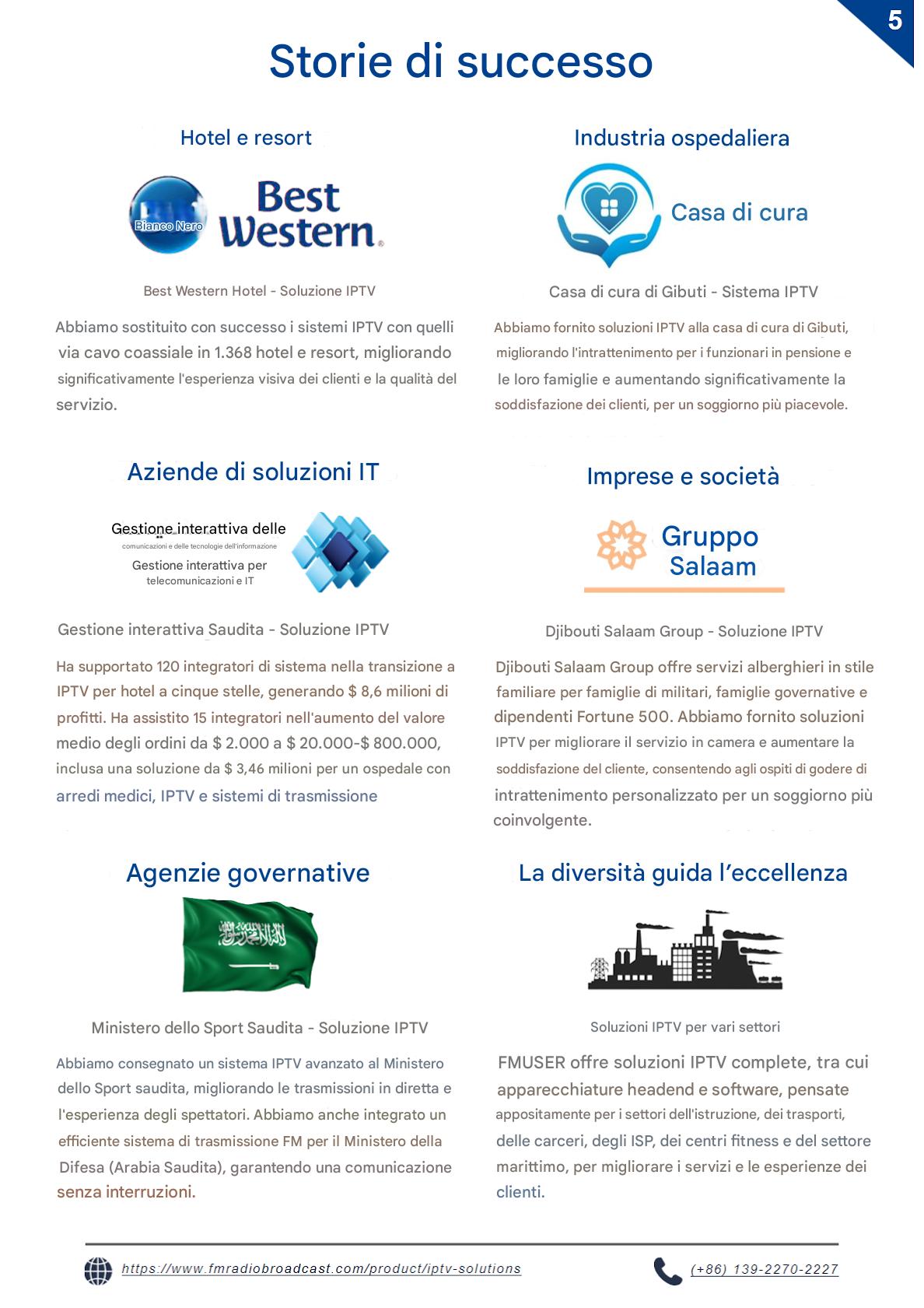 Soluzioni IPTV professionali progettate per applicazioni nei settori dell'ospitalità, dell'assistenza sanitaria, del trasporto marittimo e istituzionale. Supporta lo streaming HD/4K con compatibilità multipiattaforma, gestione centralizzata e distribuzione sicura dei contenuti su reti aziendali/governative.