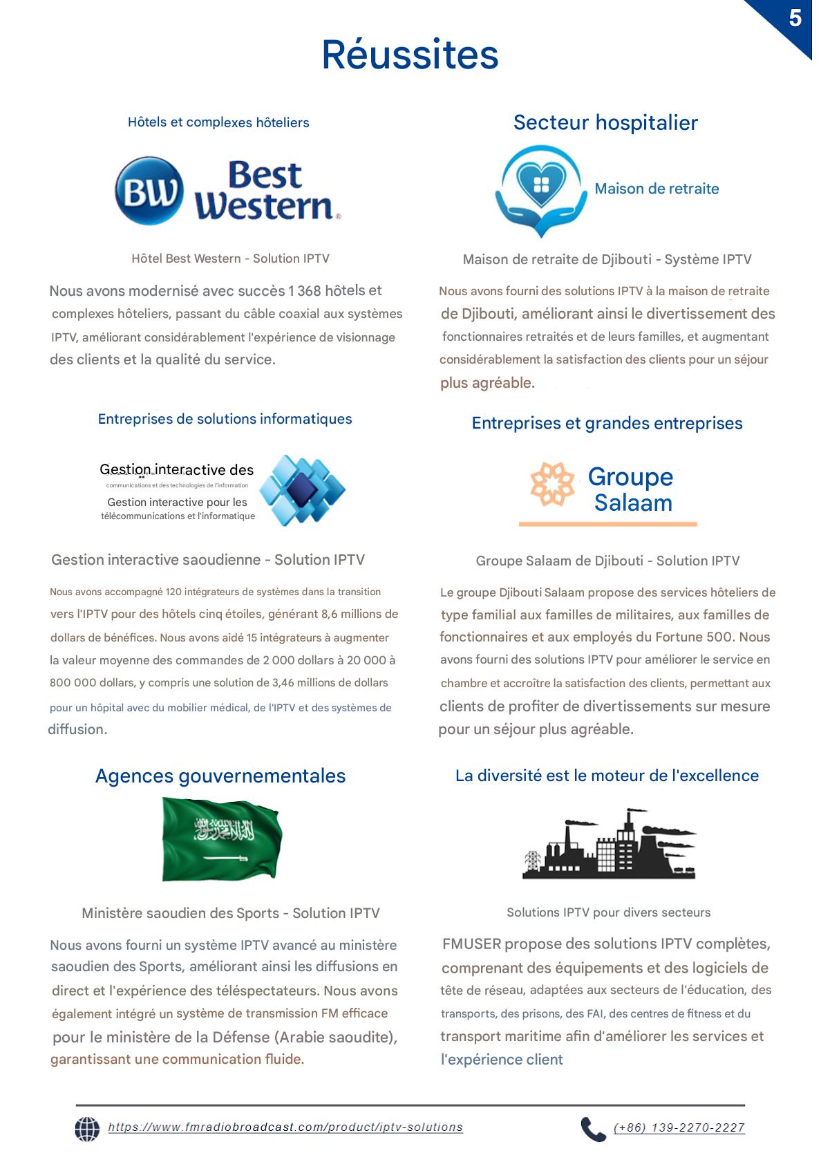 Solutions IPTV professionnelles conçues pour les applications hôtelières, de santé, maritimes et institutionnelles. Prend en charge le streaming HD/4K avec compatibilité multiplateforme, gestion centralisée et distribution de contenu sécurisée sur les réseaux d'entreprise/gouvernementaux.