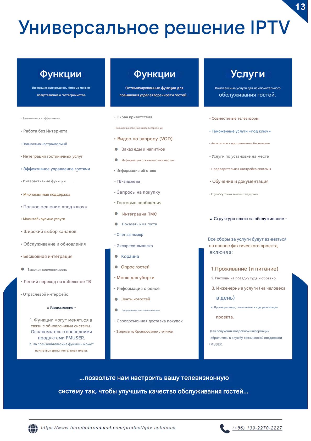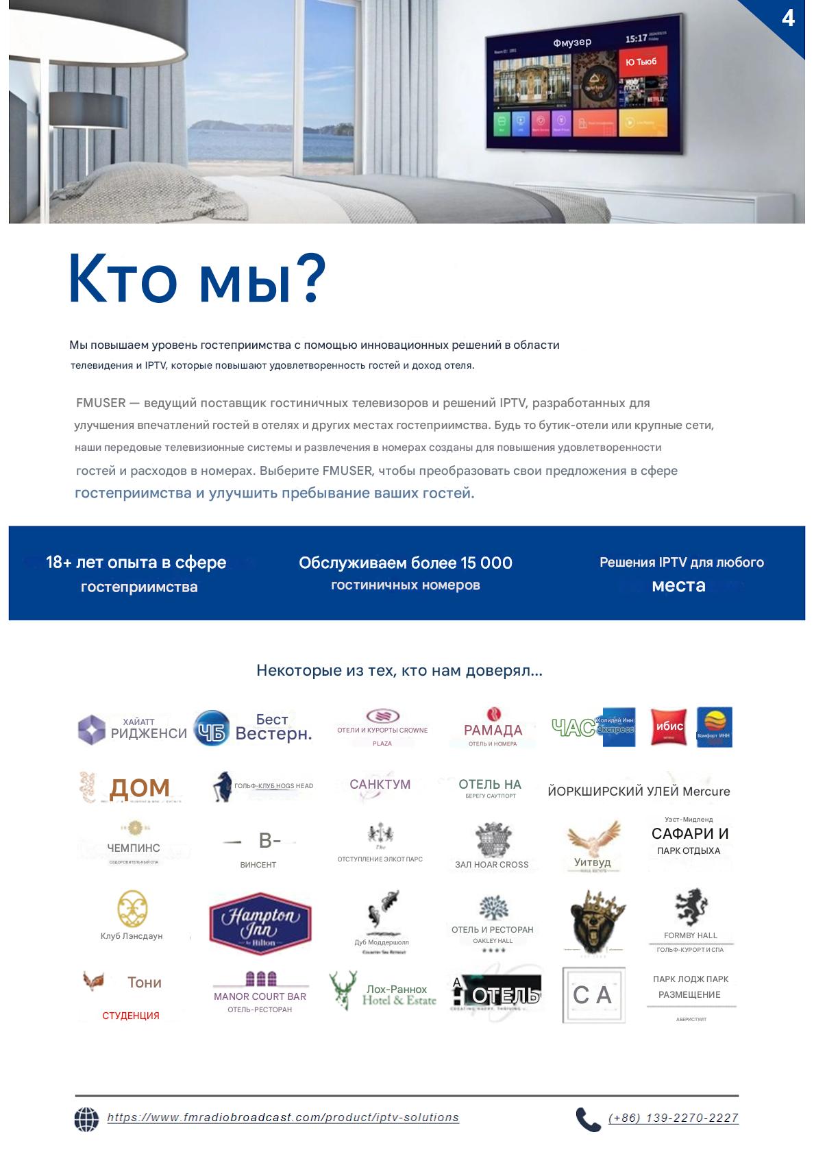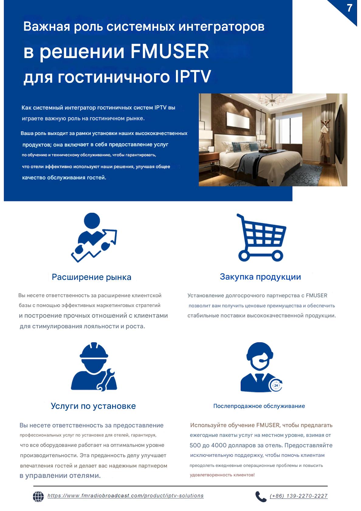 Профессиональные решения IPTV, разработанные для сферы гостеприимства, здравоохранения, судоходства и институциональных приложений. Поддерживает потоковую передачу HD/4K с многоплатформенной совместимостью, централизованным управлением и безопасным распространением контента в корпоративных/государственных сетях.