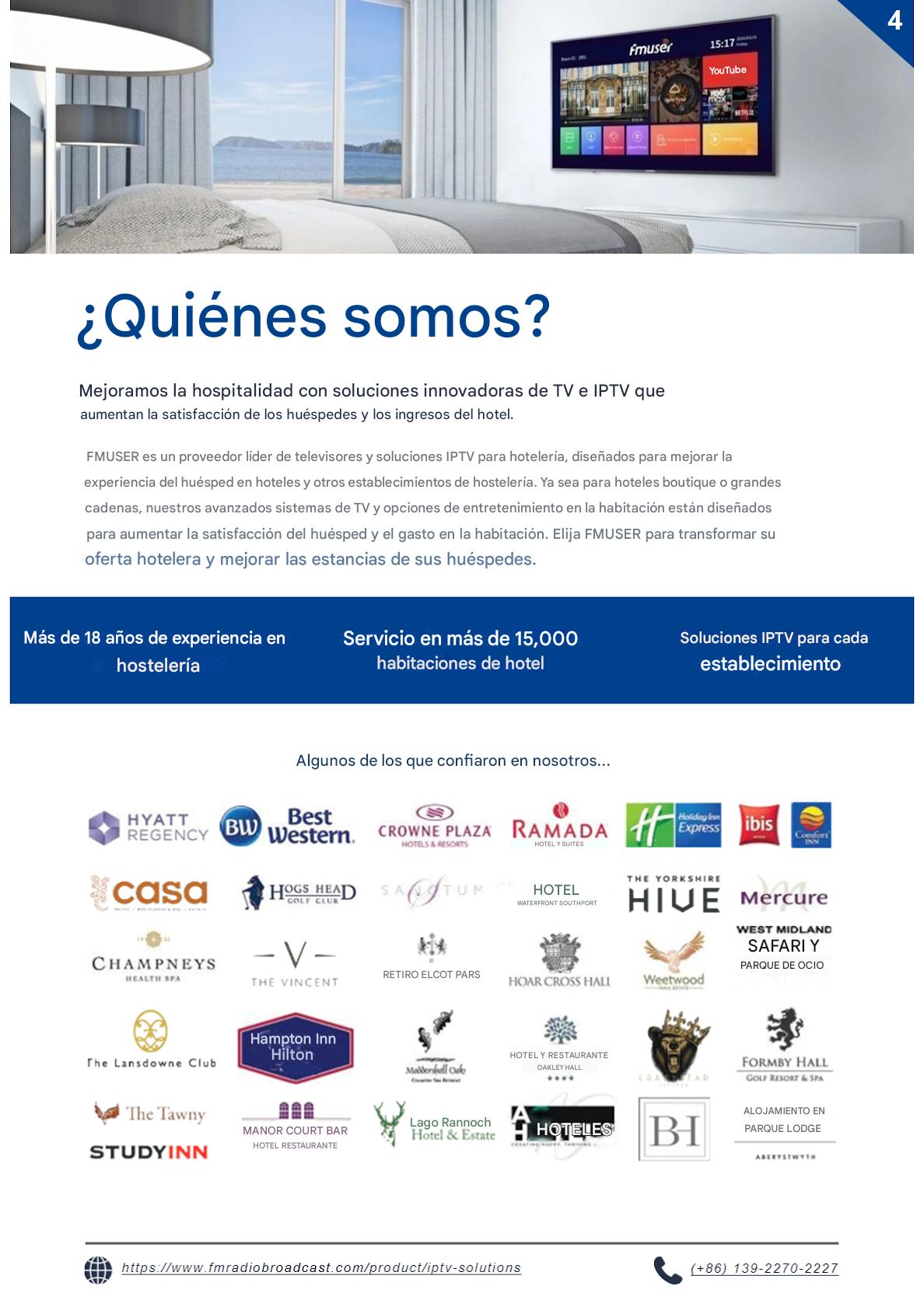 Soluciones IPTV profesionales diseñadas para aplicaciones hoteleras, sanitarias, marítimas e institucionales. Admite transmisión HD/4K con compatibilidad multiplataforma, administración centralizada y distribución segura de contenido en redes empresariales y gubernamentales.