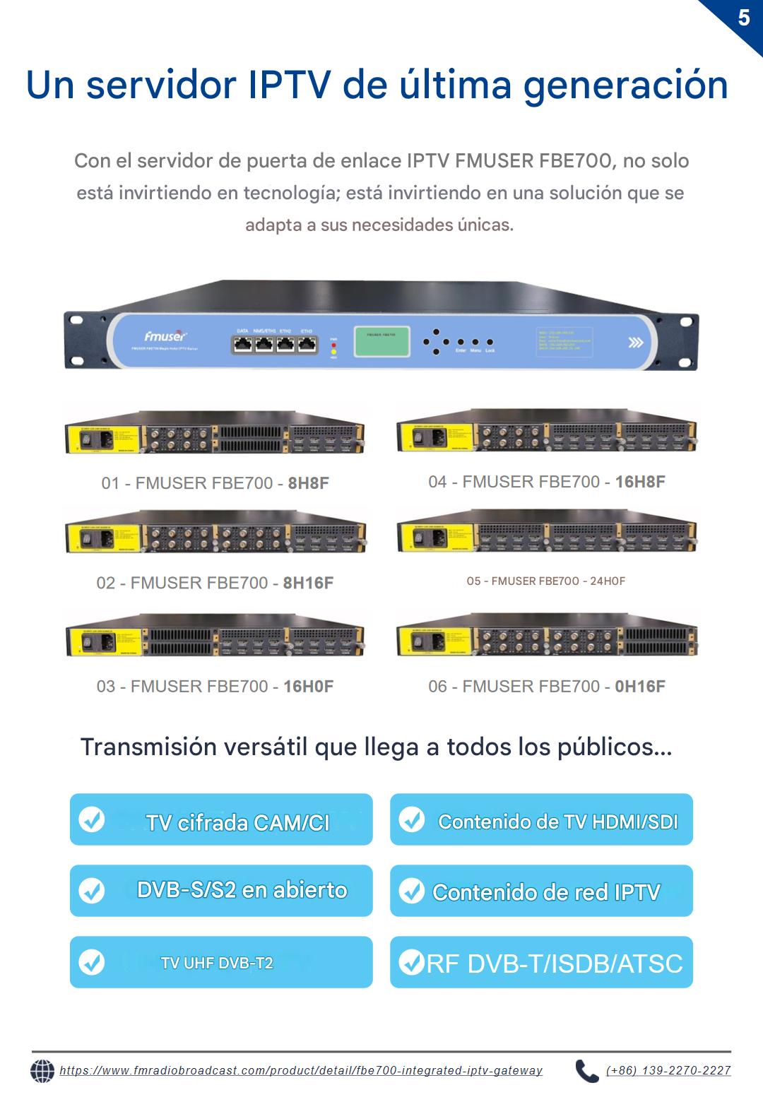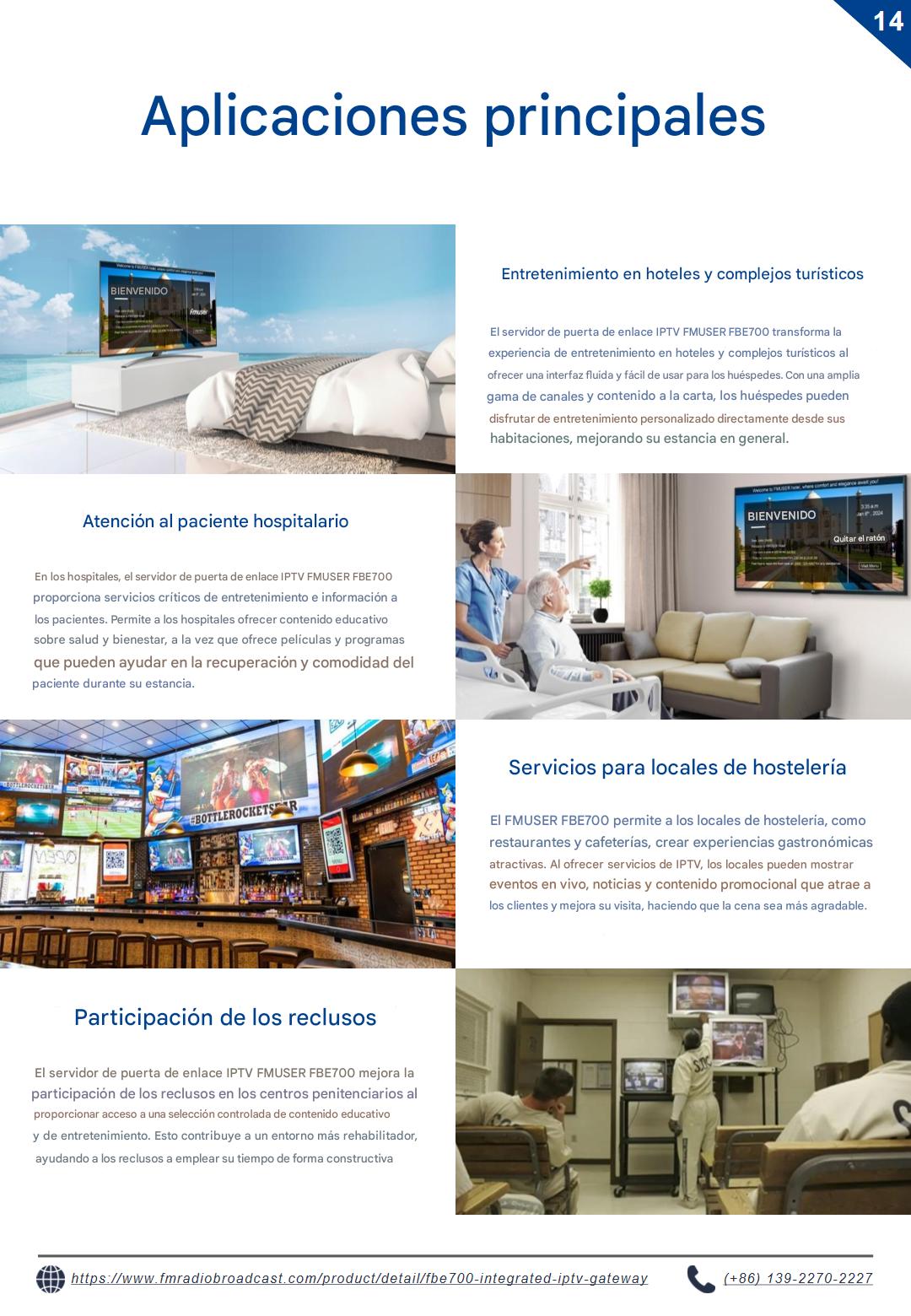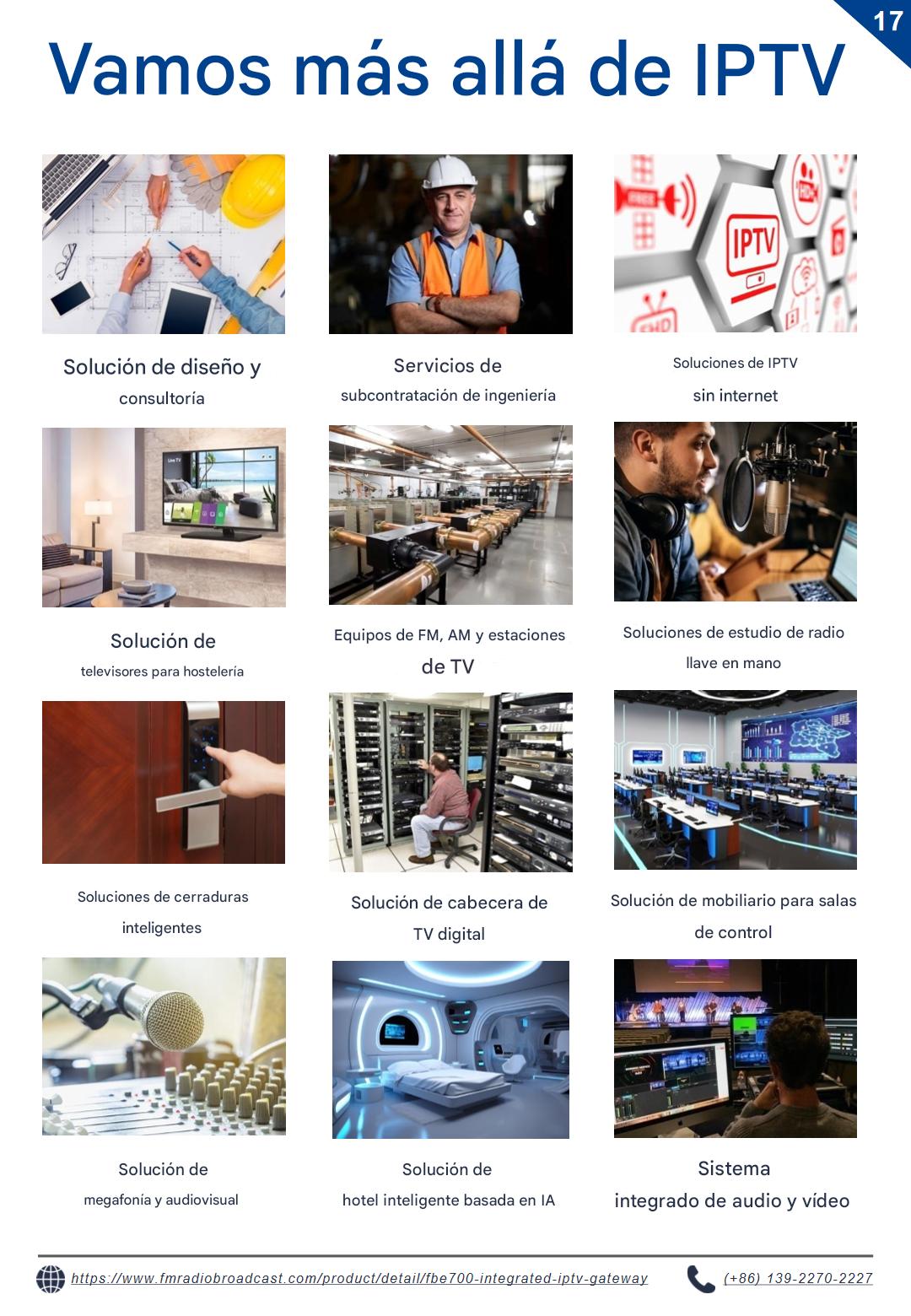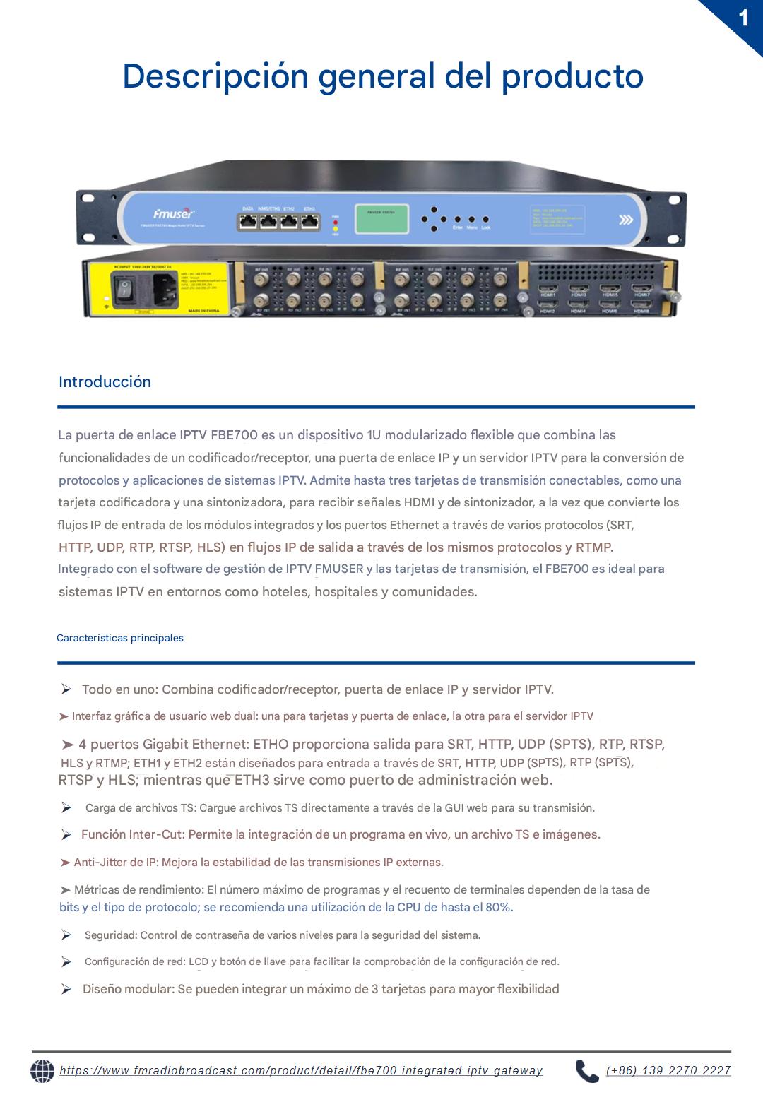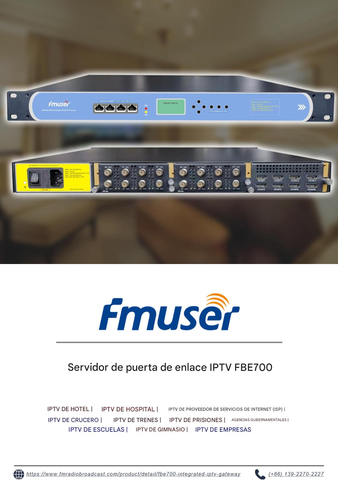 Explore el servidor de puerta de enlace IPTV FBE700, diseñado para diversos sectores, como hoteles, hospitales, proveedores de servicios de internet (ISP) y cruceros. Diseñada para ofrecer una distribución fiable de contenido digital en entornos exigentes, esta solución de nivel empresarial admite implementaciones escalables en centros penitenciarios, instituciones educativas y organismos gubernamentales. Su robusto rendimiento satisface los requisitos de infraestructura crítica.