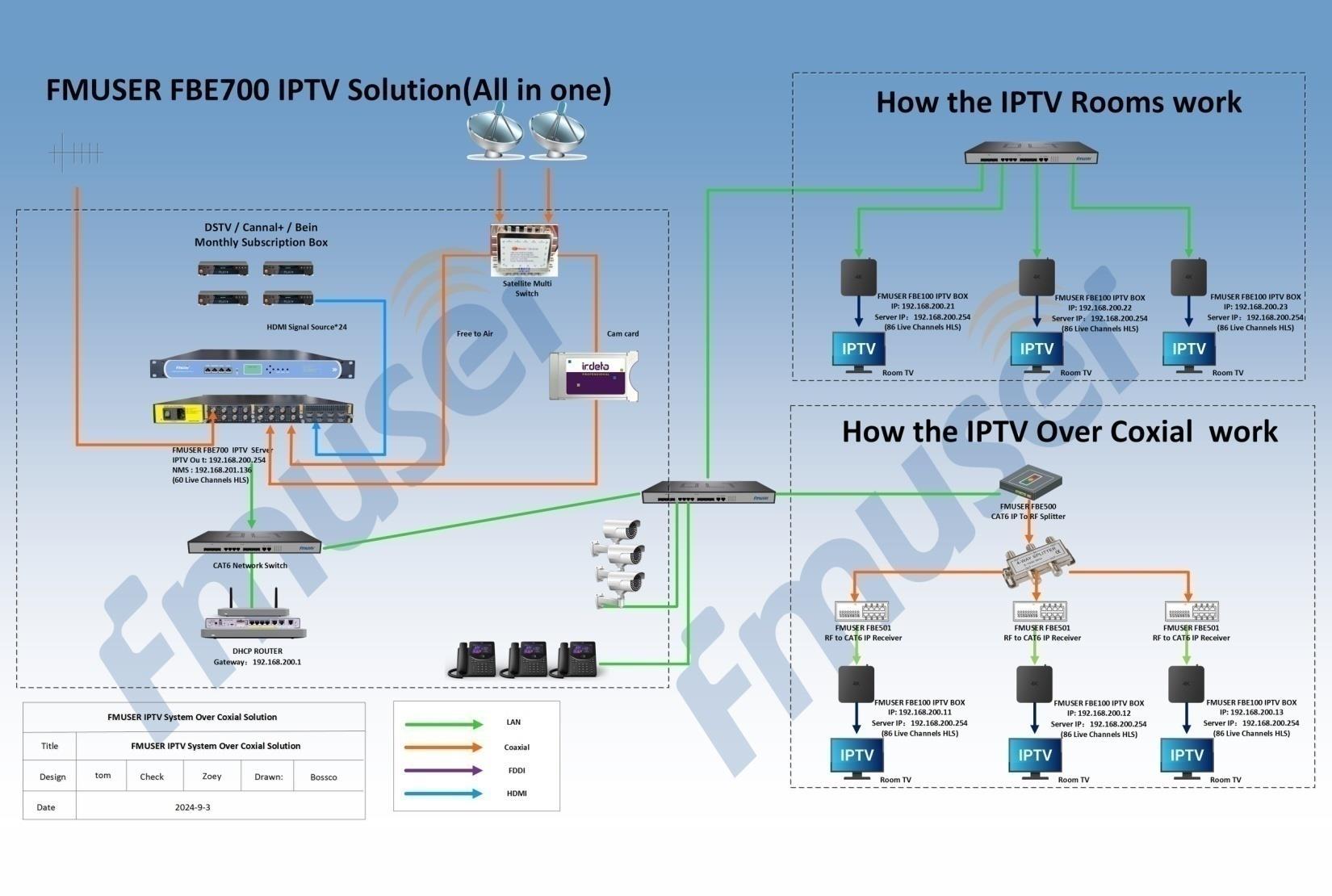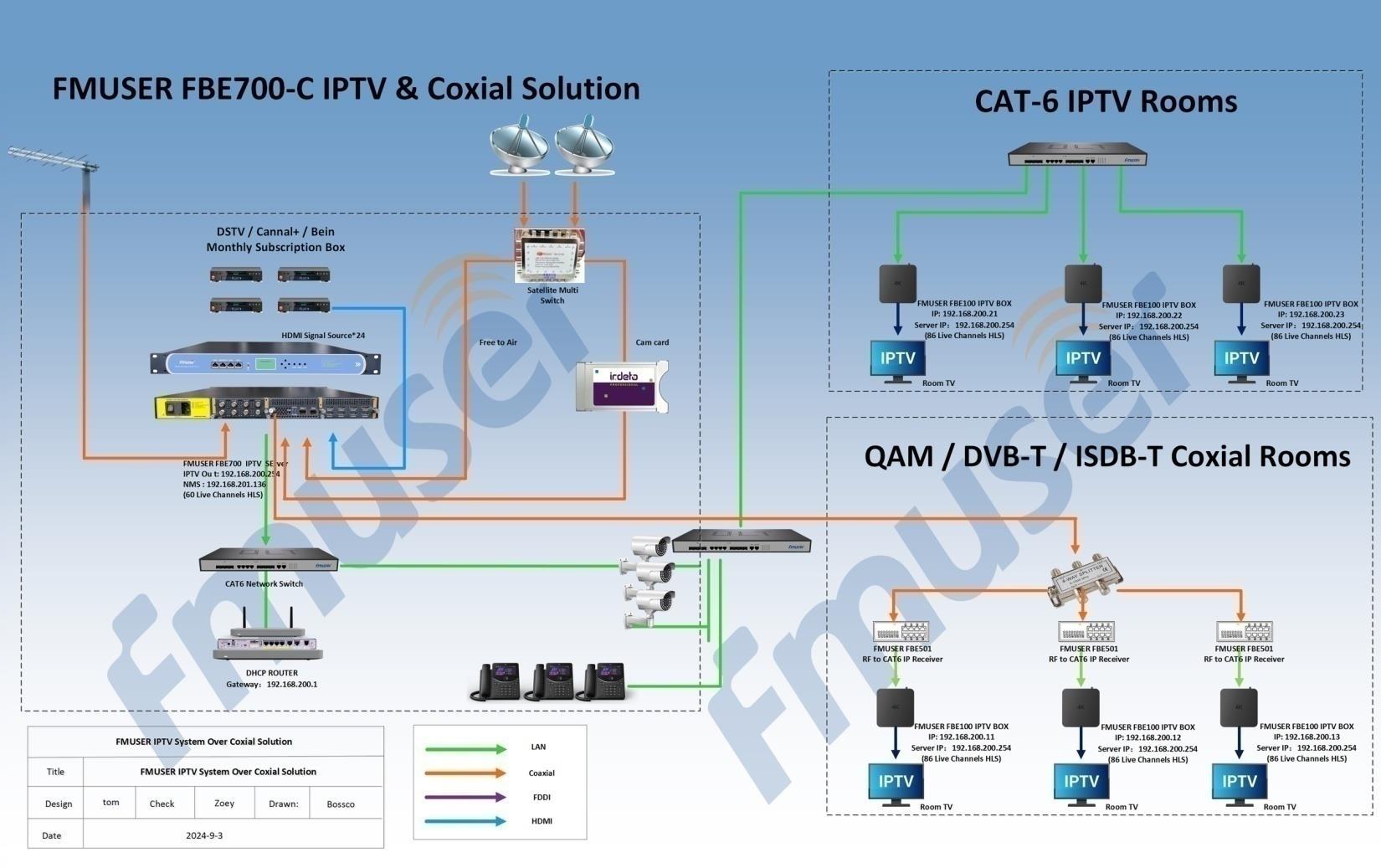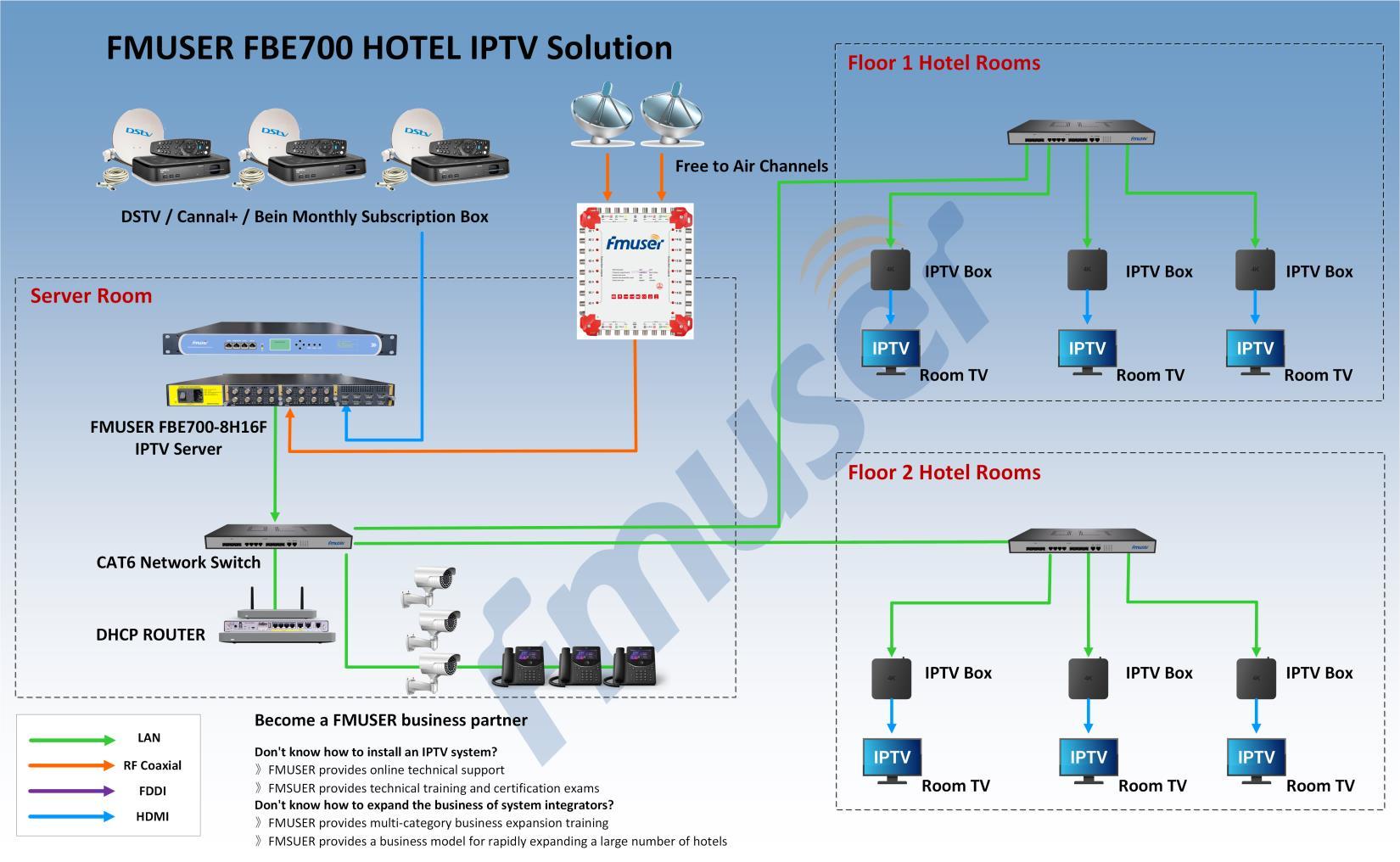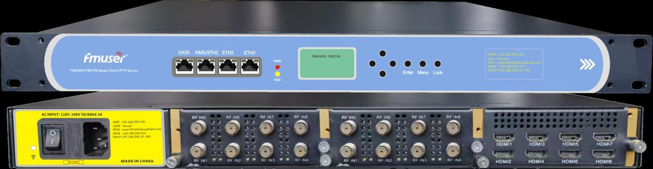 Integrated with FMUSER IPTV management software and streamer cards, the FBE700 is ideal for IPTV systems in settings like hotels, hospitals, and communities.