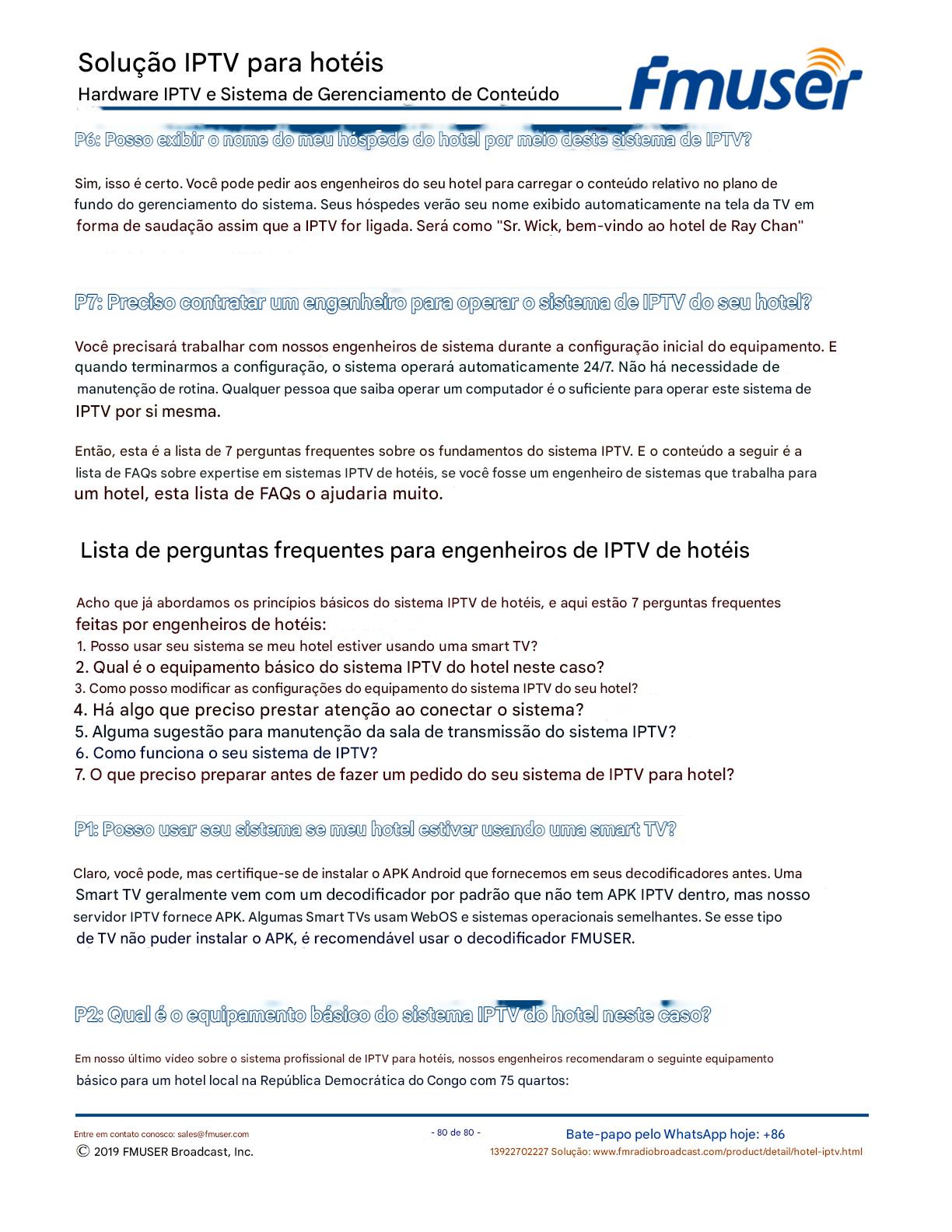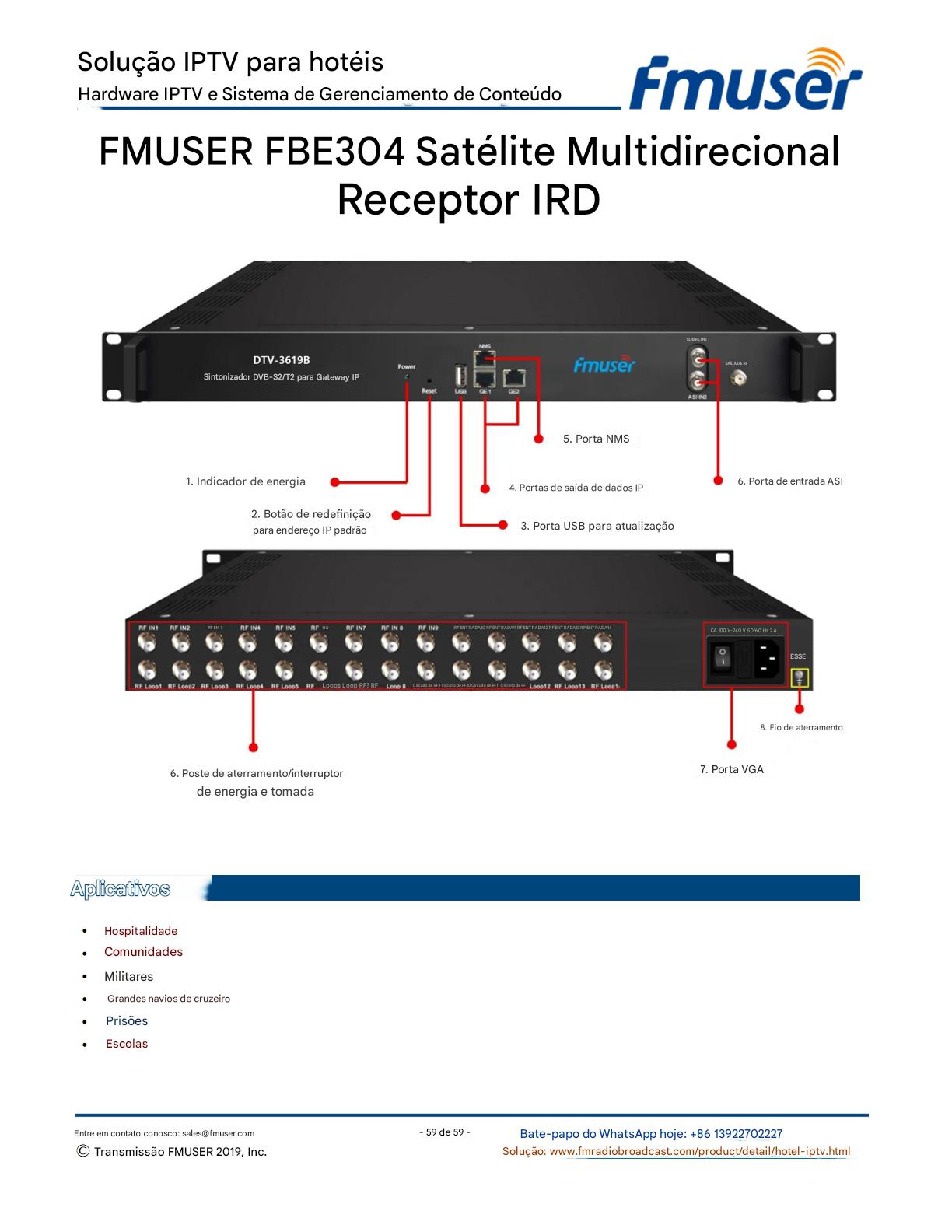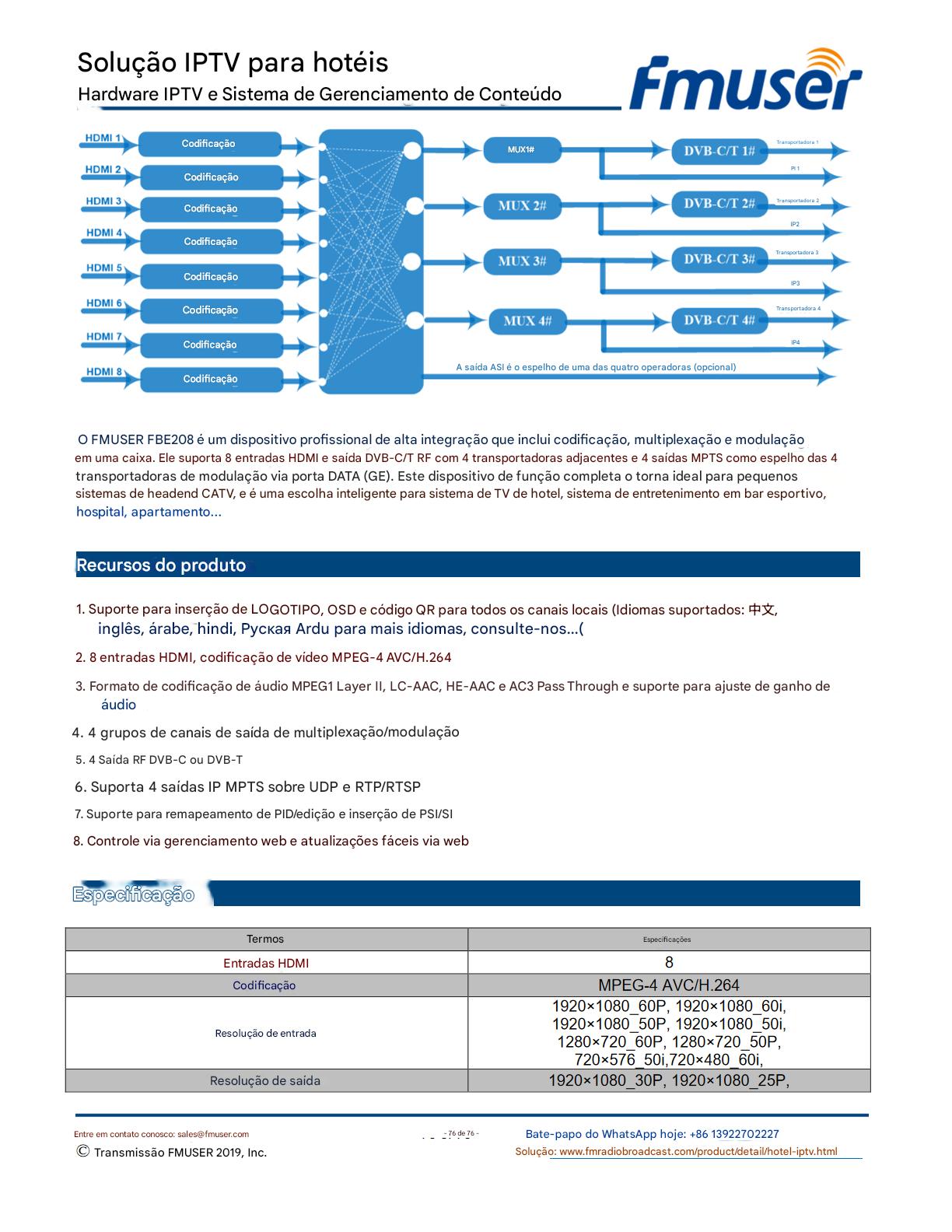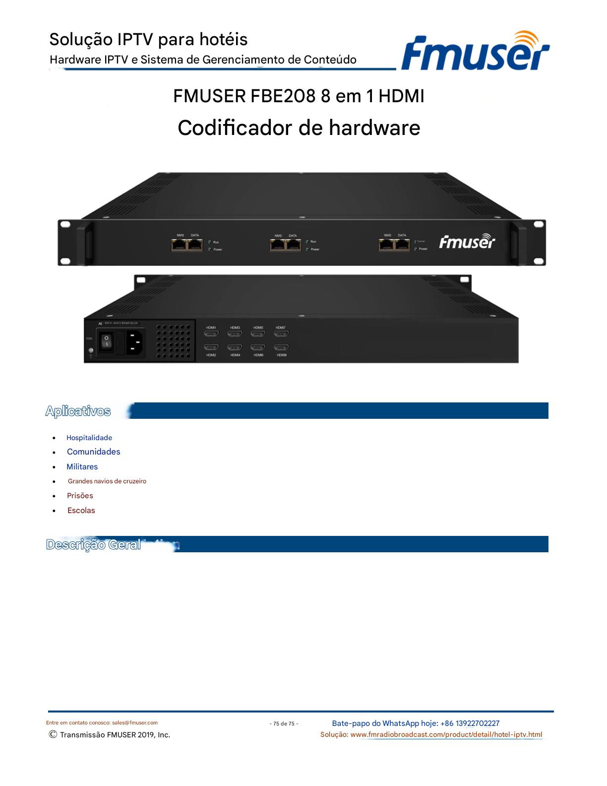 A FMUSER fornece uma solução completa de IPTV para engenheiros de hotéis, apresentando IRDs de nível de transmissão, codificadores de hardware, gateways de IPTV e decodificadores comerciais. Projetada para integradores de sistemas, essa arquitetura escalável oferece suporte a streaming HD/4K, gerenciamento centralizado e integração perfeita com sistemas PMS/CAS de hotéis. Explore soluções de distribuição de vídeo de nível profissional.