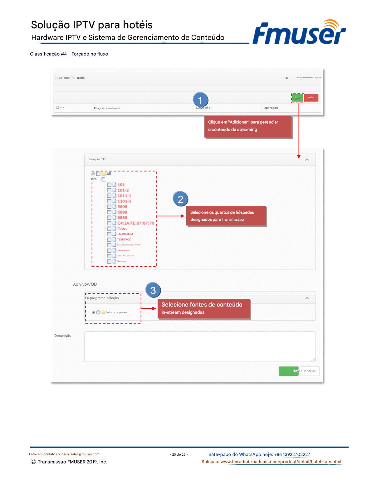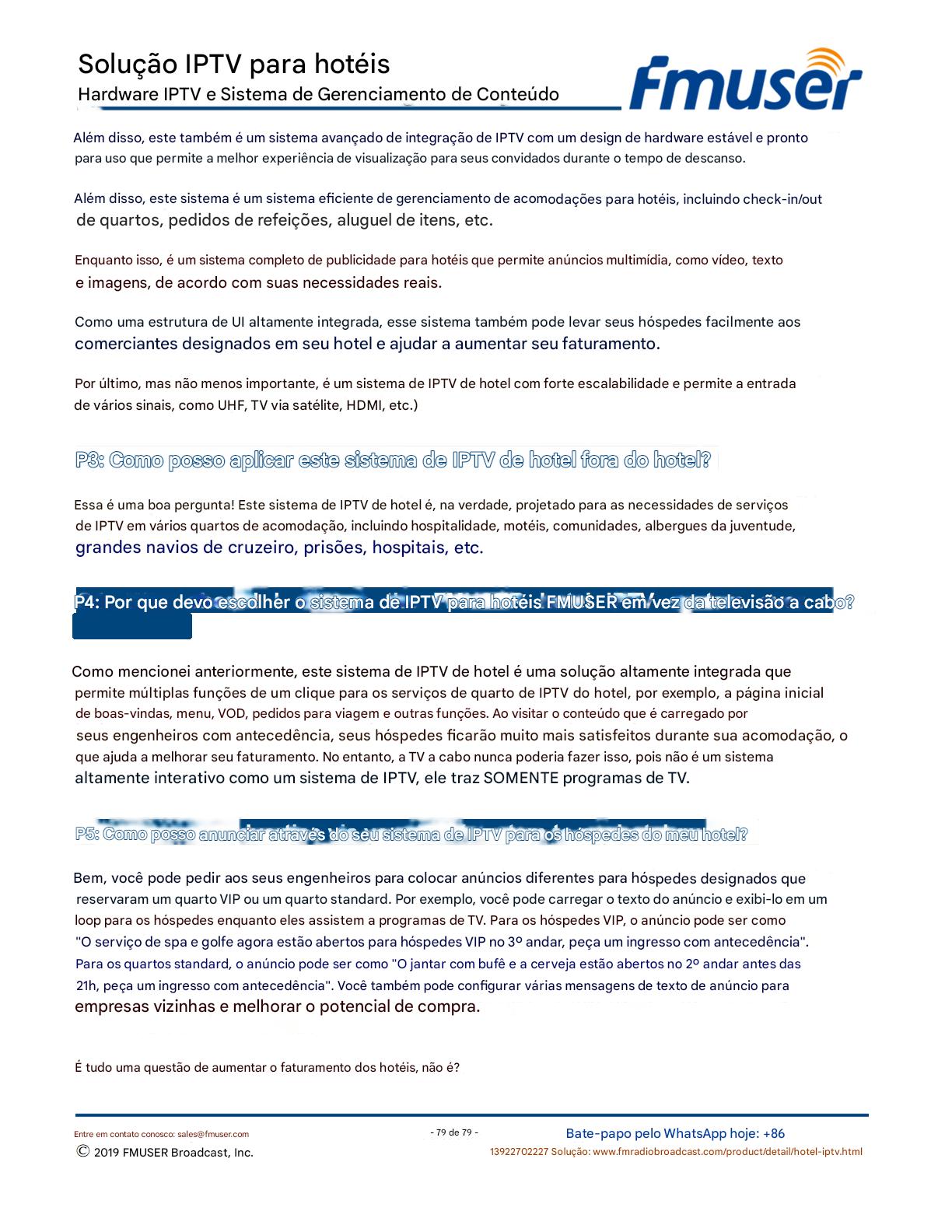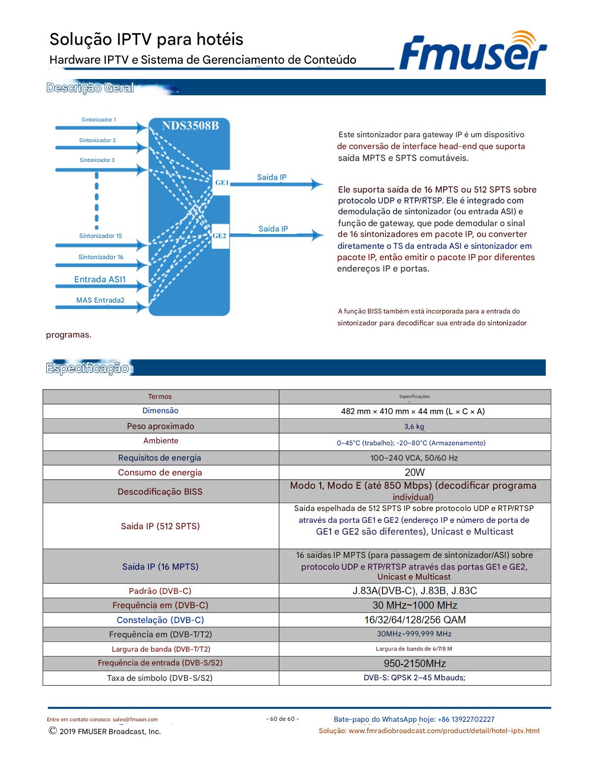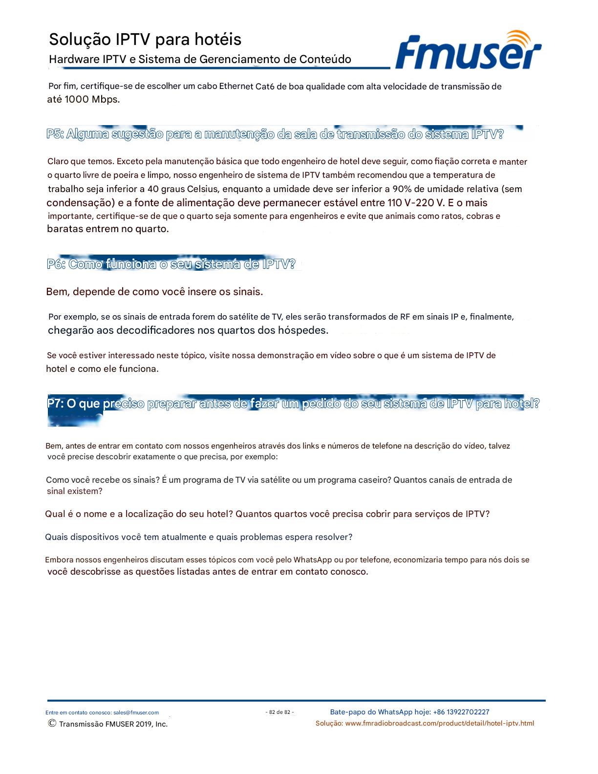 A FMUSER fornece uma solução completa de IPTV para engenheiros de hotéis, apresentando IRDs de nível de transmissão, codificadores de hardware, gateways de IPTV e decodificadores comerciais. Projetada para integradores de sistemas, essa arquitetura escalável oferece suporte a streaming HD/4K, gerenciamento centralizado e integração perfeita com sistemas PMS/CAS de hotéis. Explore soluções de distribuição de vídeo de nível profissional.