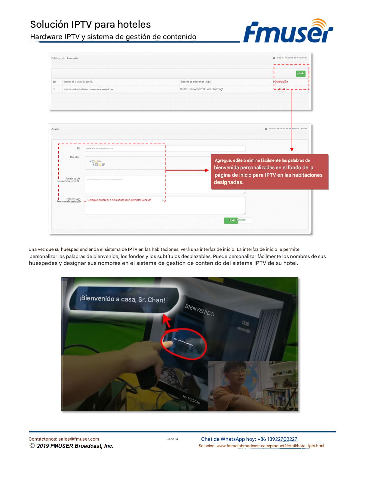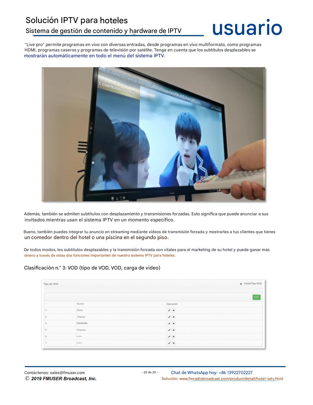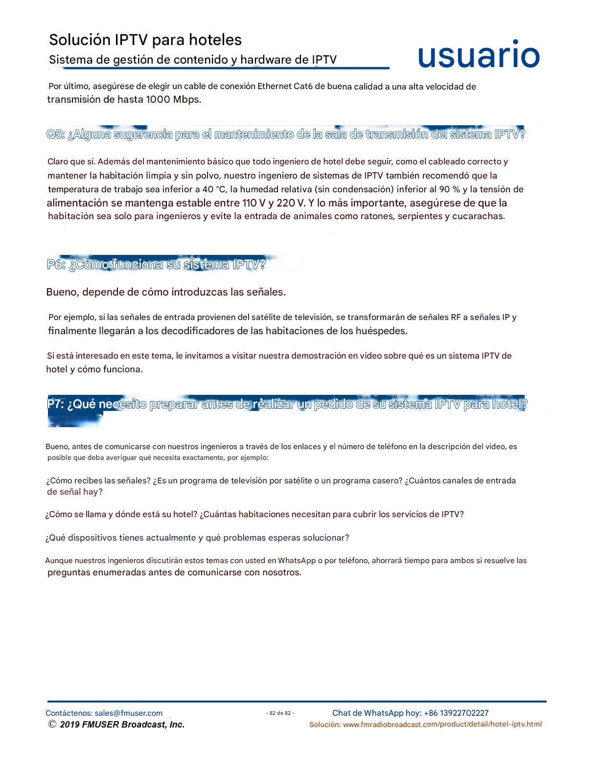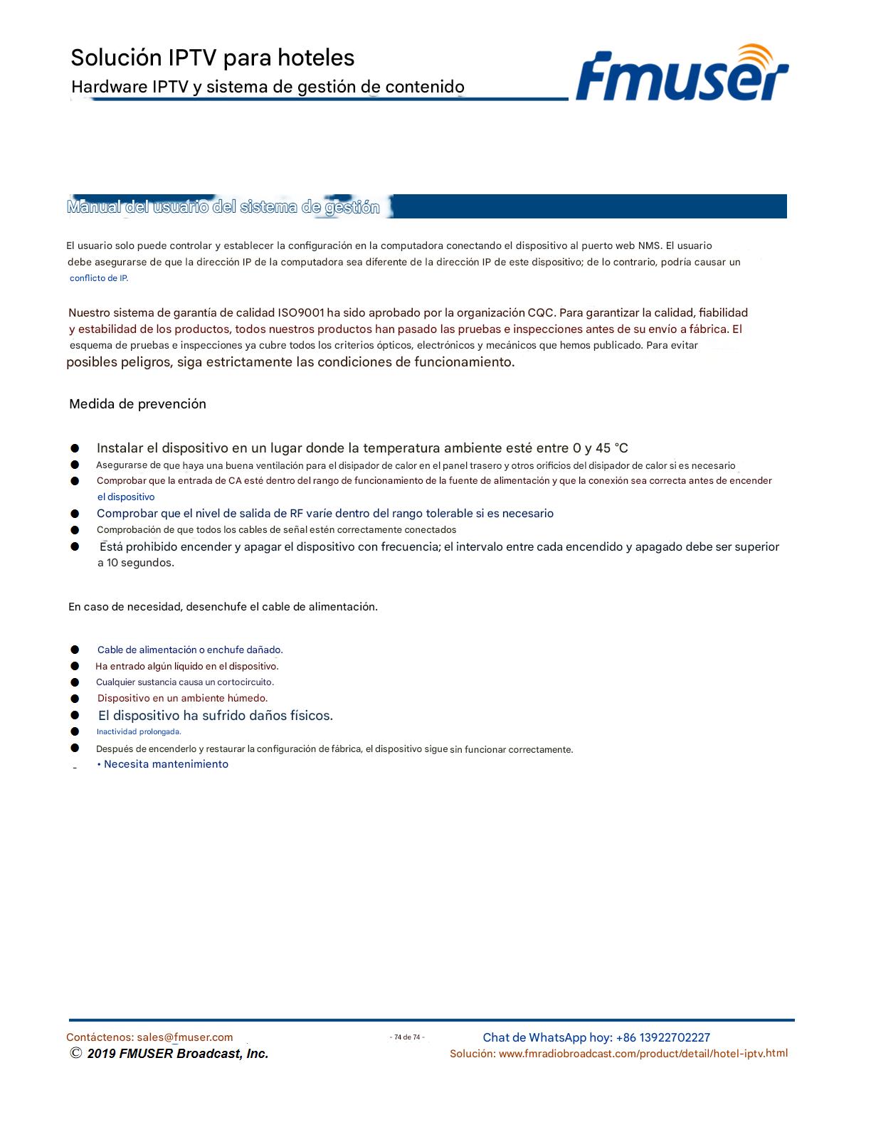 FMUSER ofrece una solución completa de IPTV para ingenieros hoteleros, con IRD de alta calidad, codificadores de hardware, puertas de enlace IPTV y decodificadores comerciales. Diseñada para integradores de sistemas, esta arquitectura escalable admite streaming HD/4K, gestión centralizada e integración fluida con sistemas PMS/CAS de hoteles. Explore soluciones de distribución de video de nivel profesional.