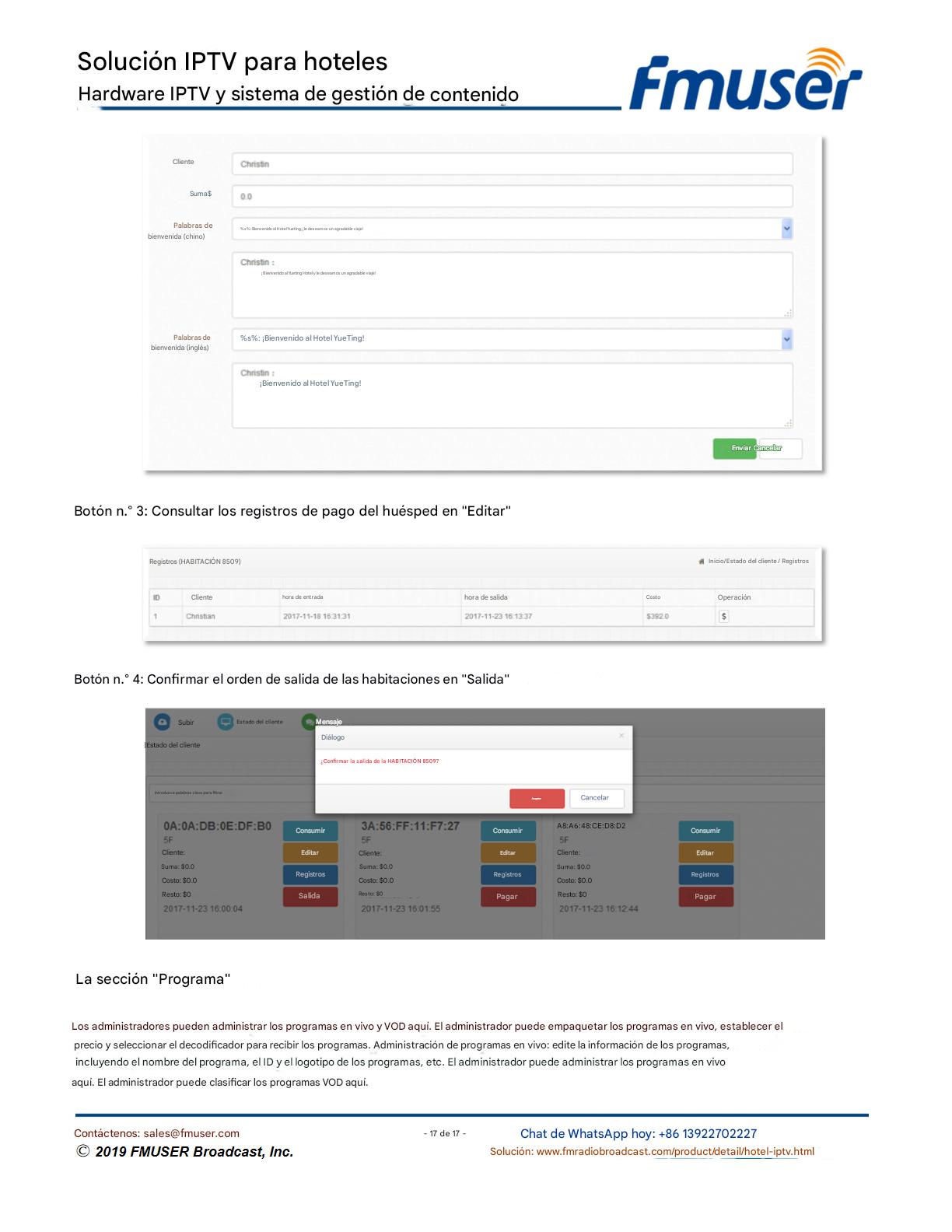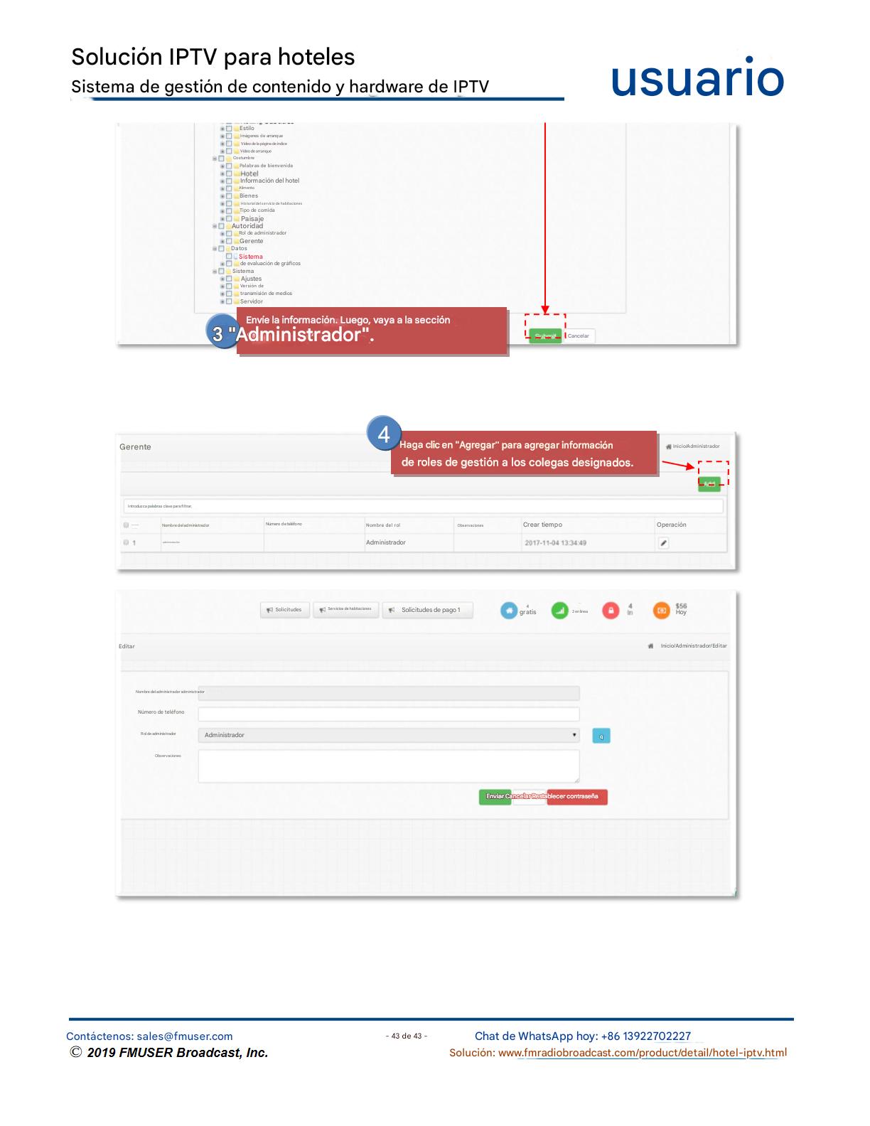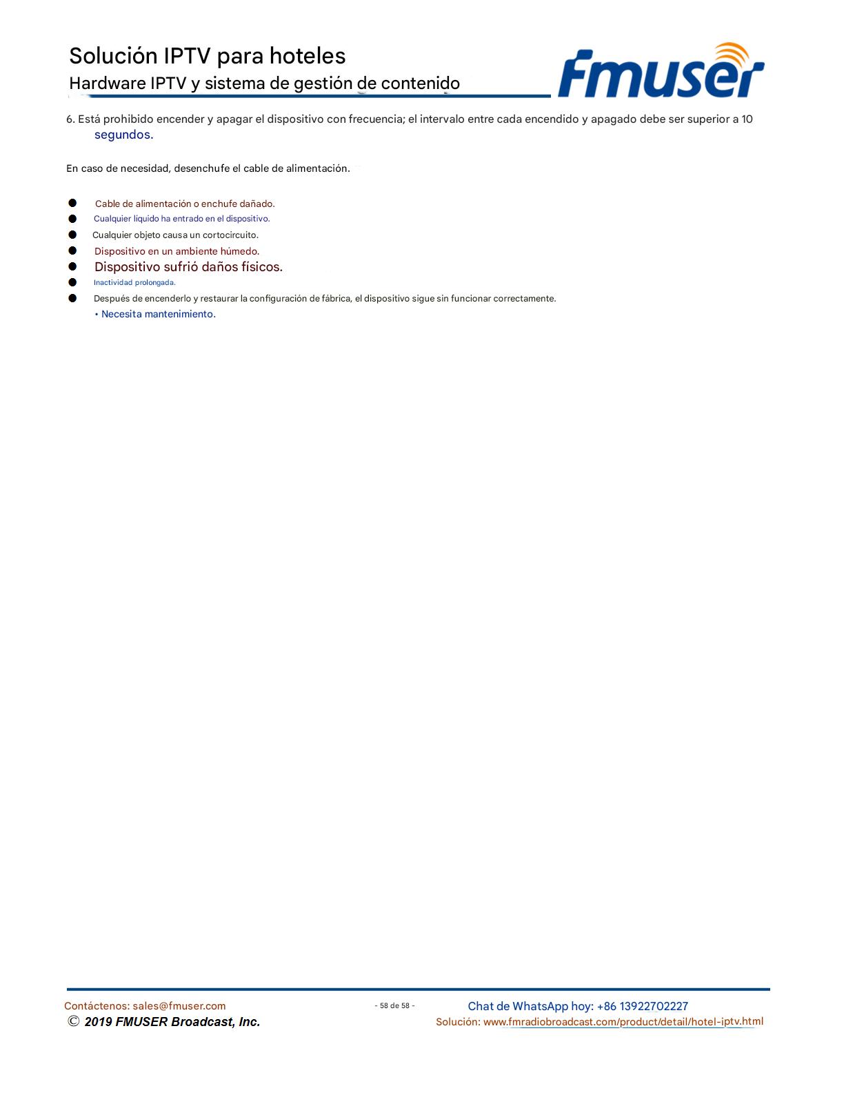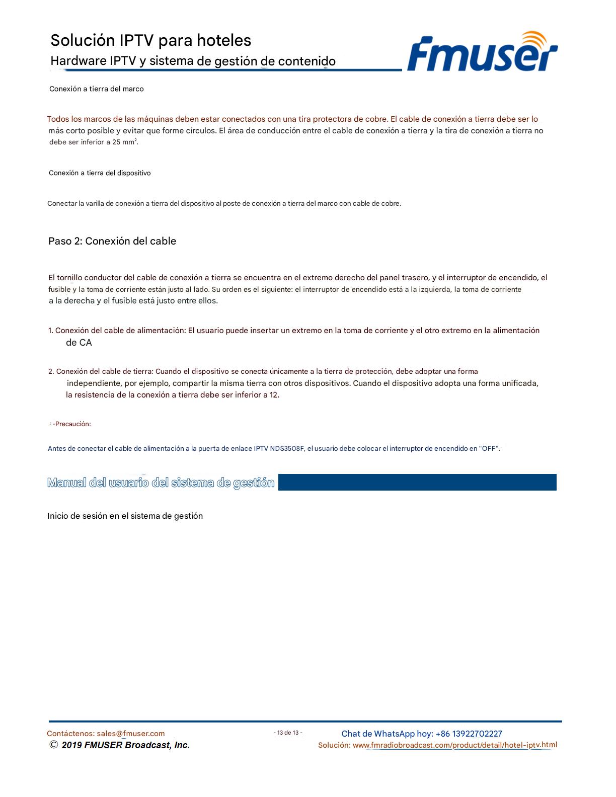 FMUSER ofrece una solución completa de IPTV para ingenieros hoteleros, con IRD de alta calidad, codificadores de hardware, puertas de enlace IPTV y decodificadores comerciales. Diseñada para integradores de sistemas, esta arquitectura escalable admite streaming HD/4K, gestión centralizada e integración fluida con sistemas PMS/CAS de hoteles. Explore soluciones de distribución de video de nivel profesional.