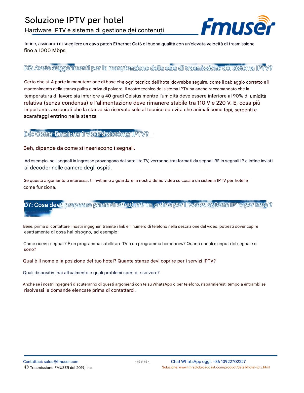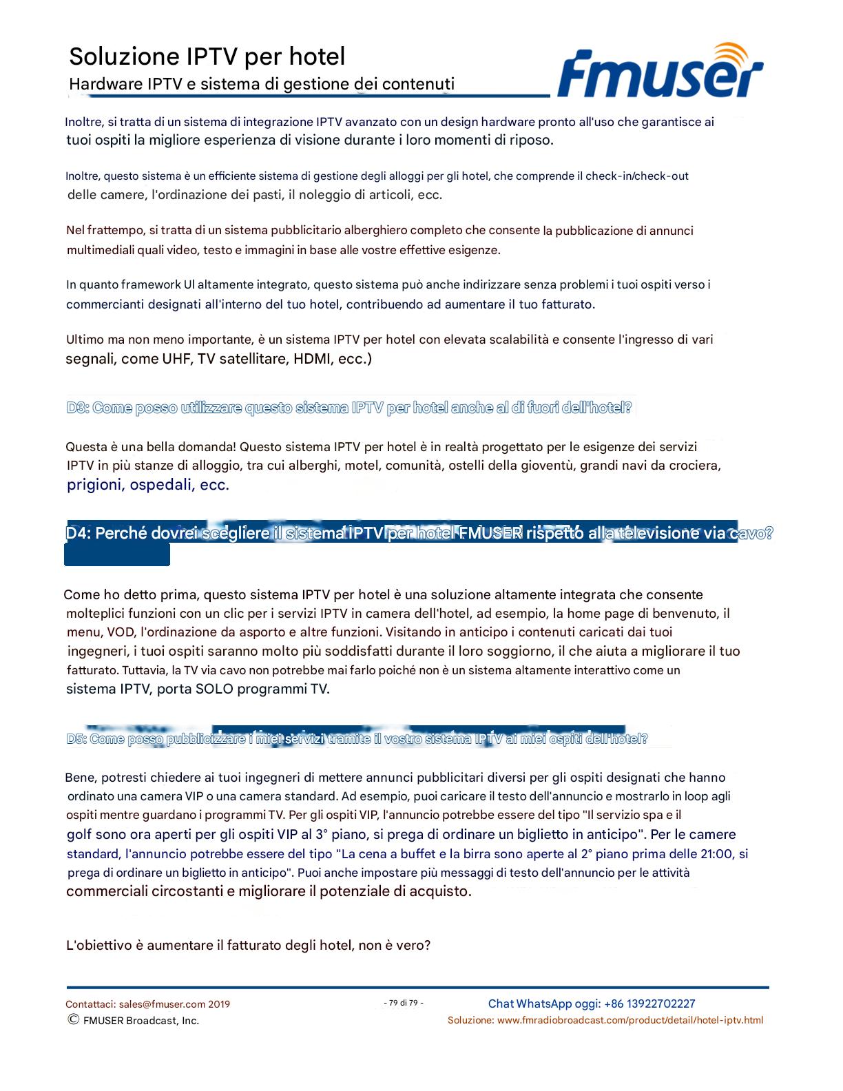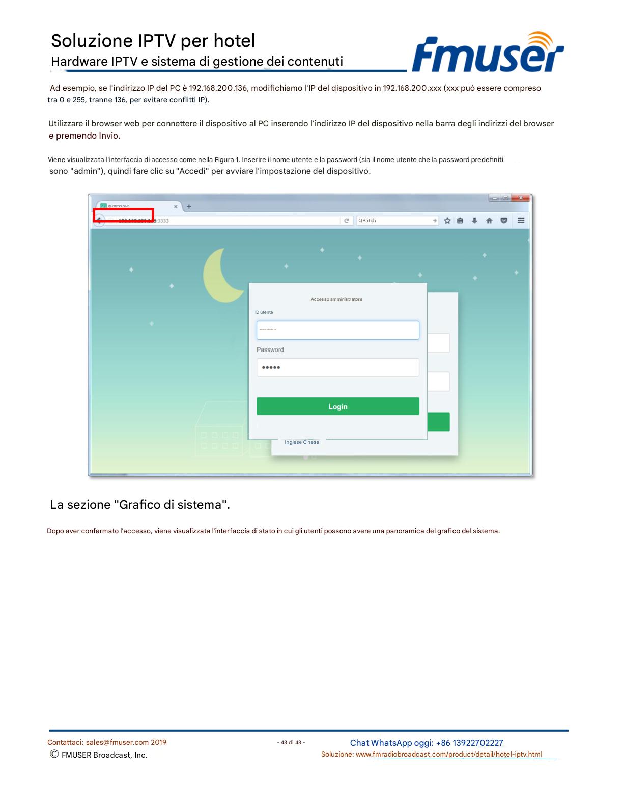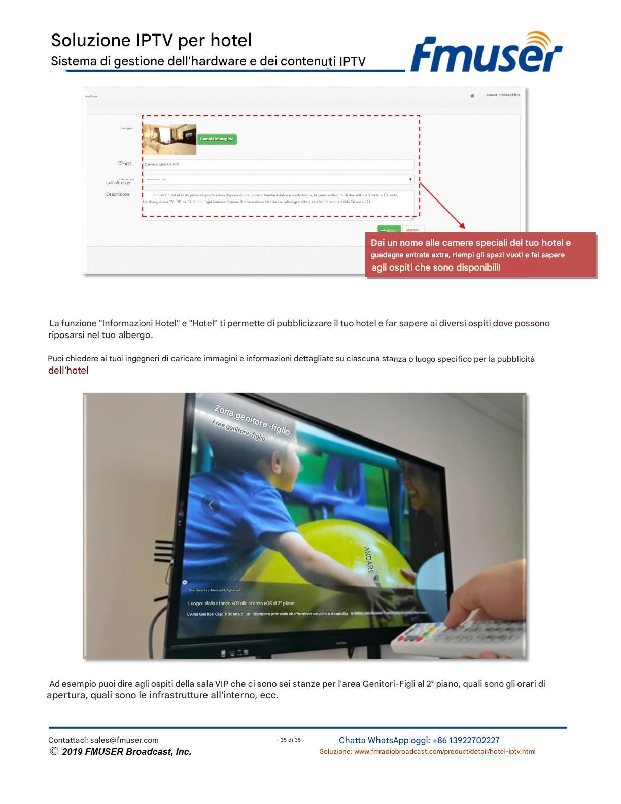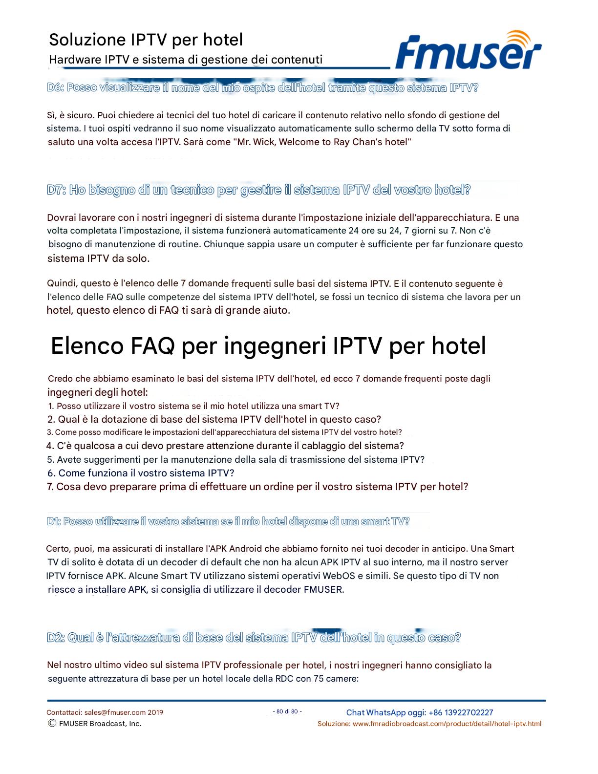FMUSER offre una soluzione IPTV completa per gli ingegneri alberghieri, con IRD di livello broadcast, codificatori hardware, gateway IPTV e decoder commerciali. Progettata per gli integratori di sistema, questa architettura scalabile supporta lo streaming HD/4K, la gestione centralizzata e l'integrazione senza soluzione di continuità con i sistemi PMS/CAS degli hotel. Esplora soluzioni di distribuzione video di livello professionale.